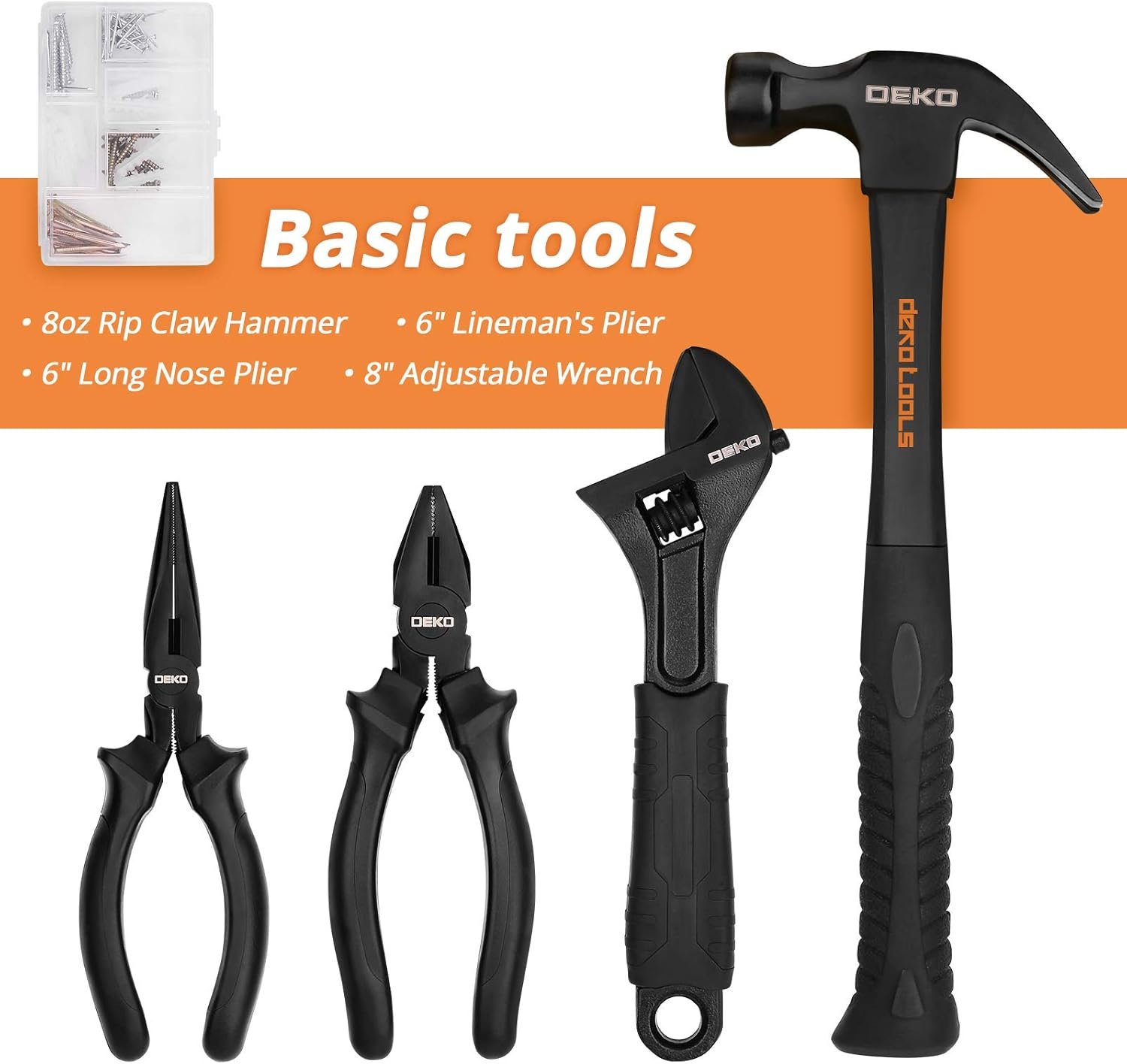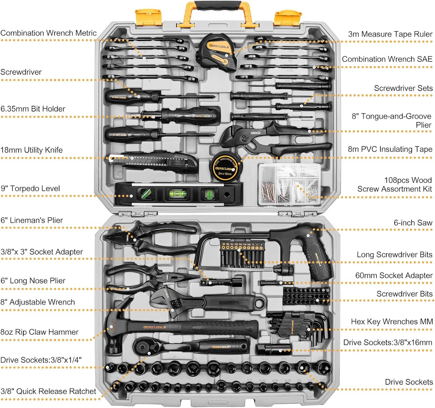 DEKOPRO 218-Piece General Household Hand Tool kit, Professional Auto Repair Tool Set for Homeowner, General Household Hand Tool Set with Plier, Screwdriver Set, Socket Set, with Portable Storage Case