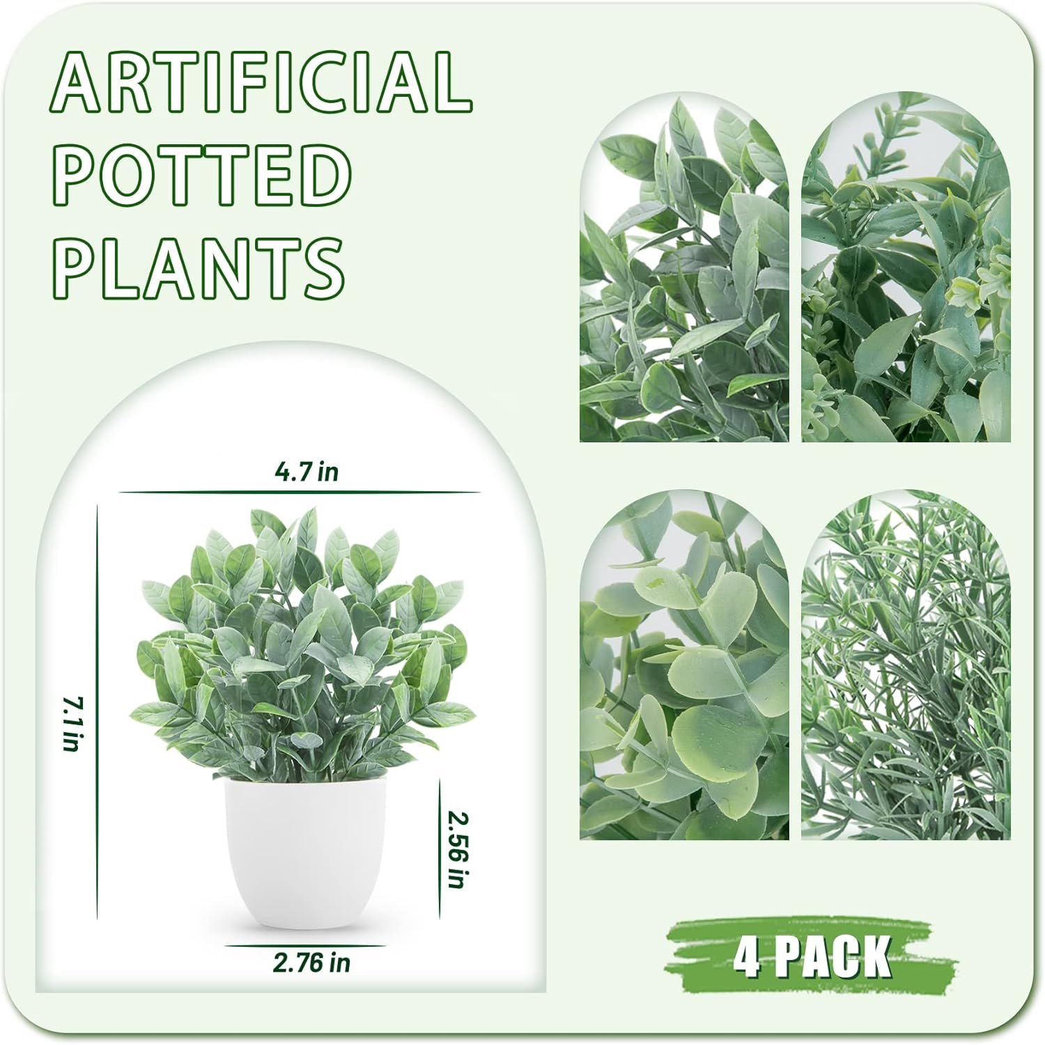 The set of 4 faux plants worked great for what I wanted them for! I used them on a shelf in a bathroom and it added some great color and accent to the decor.