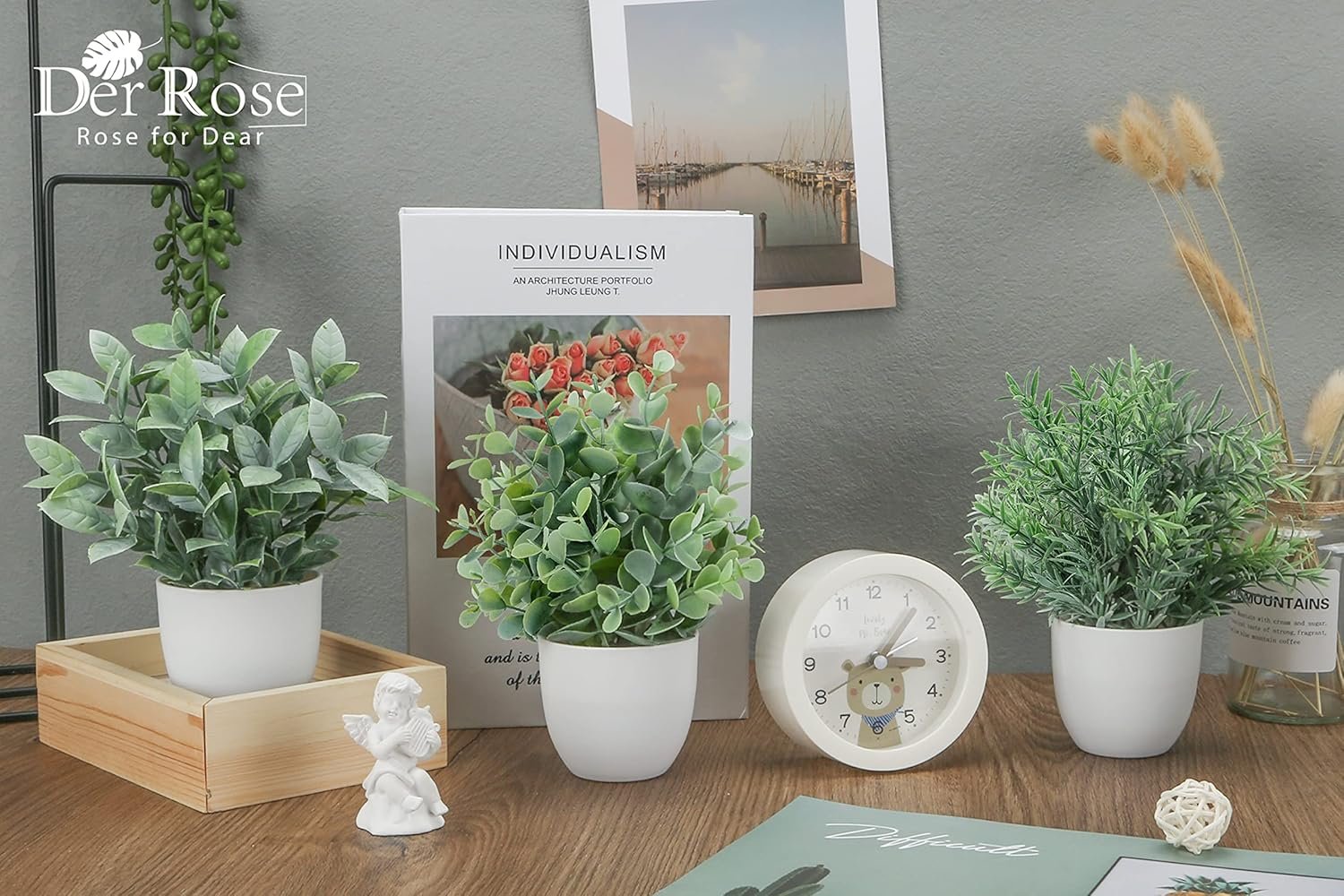 13 reviews for Der Rose Faux Plants Indoor, 4 Pack Small Fake Plants Mini Artificial Plants in Pots for Home Office Shelf Farmhouse Bathroom Decor