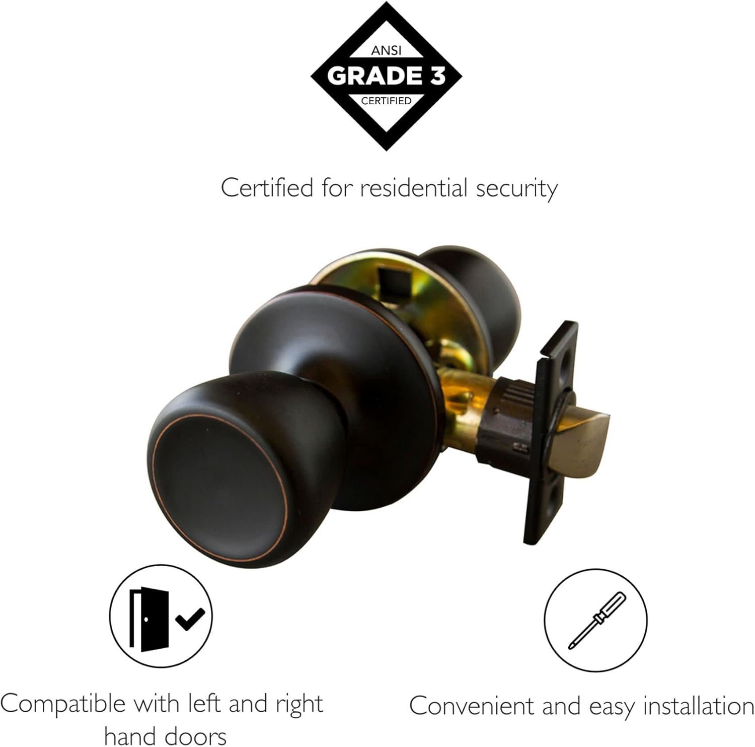 I was at first excited about the dead bolt and door knob set. Beautiful color, easy to install and inexpensive. Thought it was a great product until about 10 days after installing.Came home and tried to unlock the deadbolt. It turned. It acted as though it unlocked. But the bolt wouldn’t move. Try as I might, I couldn’t get the bolt to disengage.After 30 mins of struggling to get into the house, I was forced to remove the whole door, which resulted in damaging the hinges. So now I’m out the cost of my purchase and now I have to buy new hinges in order hang my door again. Every store is closed, so we’re without a door for the night. (Which makes it worse because I live in the country and frequently have possum and raccoons on my deck looking for food, and they have no qualms with stopping in for a snack with no door).Upon inspection, I found that a pin inside the deadbolt assembly had fallen out and caused the mechanism to fail. The pin was poorly crimped on one end, which was needed to keep it in place.Overall, good looking product, with horrible quality. Steer clear of this brand. Spend the little extra and protect yourself from being locked out of your house by the very product meant to protect you.