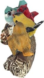 Pro: Wow! Hand-painted and beautiful colors just as described! Best of all, the birds are well matched with another Bird on a stack of books which was a pleasant surprise from a different seller. This is top quality and the personalities of each bird is unique and fun!! Mine will sit next to a hummingbird feeder on a glass and rattan table on my small patio next to a public sidewalk and my apartment neighbors enjoy handling these cute things. During high winds and heavy rains I will still bring it inside because although it’s weatherproof paint, it is not as stable due to the weight of the birds being further back on the log and only their tails keep it from falling backwards.Con: Might tip over if pets or children accidentally bump the table. UPDATED: Sadly, a week later we had wind of 15 mph. and it blew over and shattered the statue.