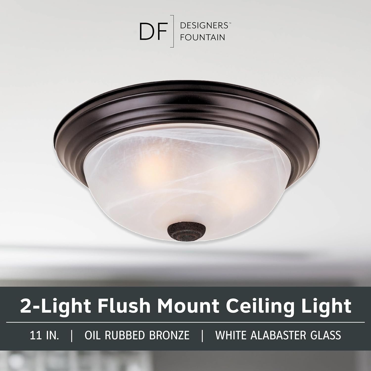 13 reviews for DESIGNERS FOUNTAIN Reedley 2-Lights Flush Mount Ceiling Light, 11 Inch Lighting Fixture for Kitchen, Bedroom, Bathroom, and Hallway, White Alabaster Glass, Oil Rubbed Bronze, 1257S-ORB-AL