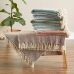 I purchased this blanket to keep on my patio. The color is perfect and the price was great! My only complaint is that it smells funny and sheds all over the place when you use it. I haven’t washed it yet, so maybe that will solve those issues. Definitely a good purchase for my patio, but I don’t think I would necessarily use this inside the house as it’s pretty thin.