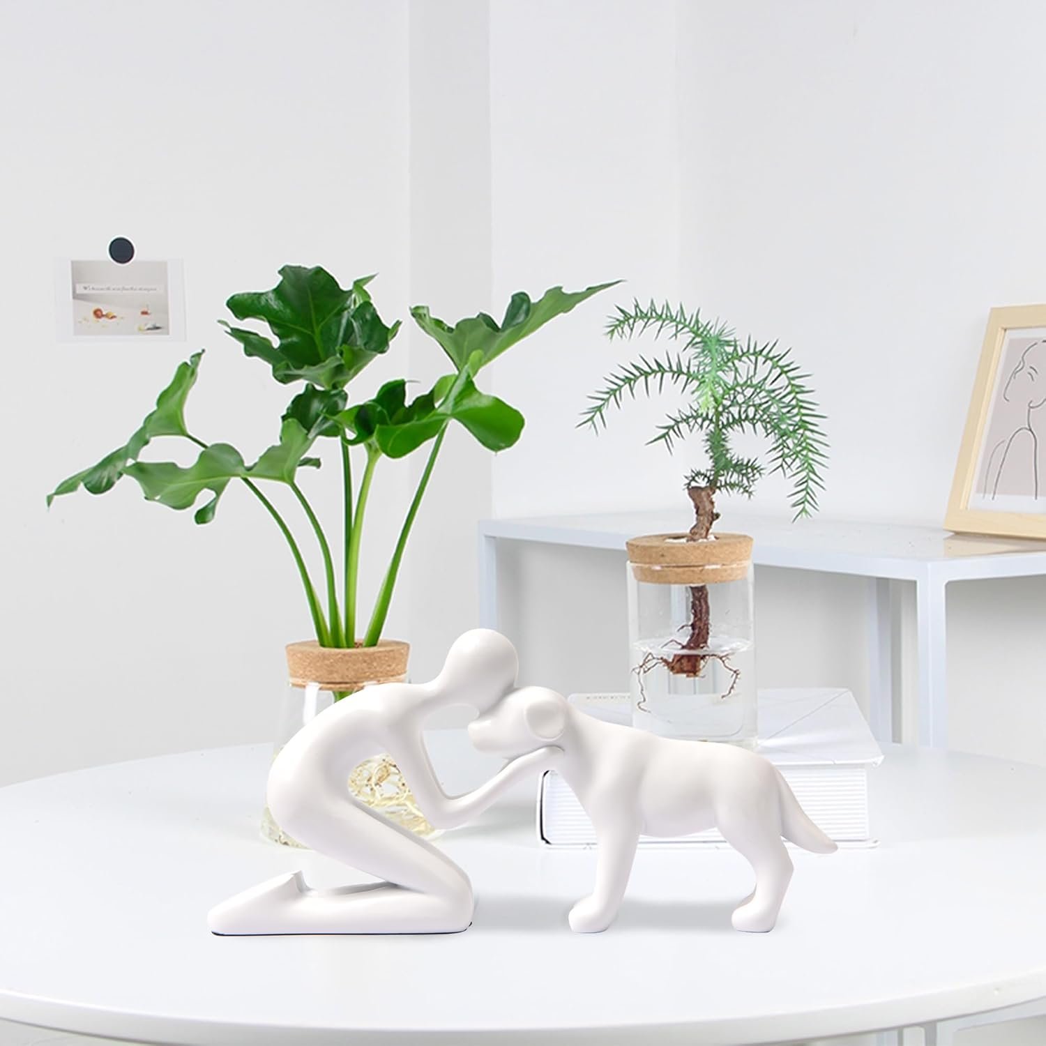 Dog Dad Gifts for Men,Unique Figurines Decor for The Home, Room,Bathroom,Shelf,Bedroom,Classroom,Statues Decorations for Pet Lover (White)