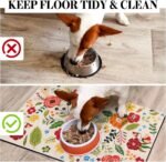 Dog Food Mats for Floors, Absorbent Quick Dry Pet Cat Food Mat, Dog Bowl Mats for Food and Water Dispenser Mat, Eco-Friendly Dog Accessories Pet Supplies 12″”x20″”, Floral White