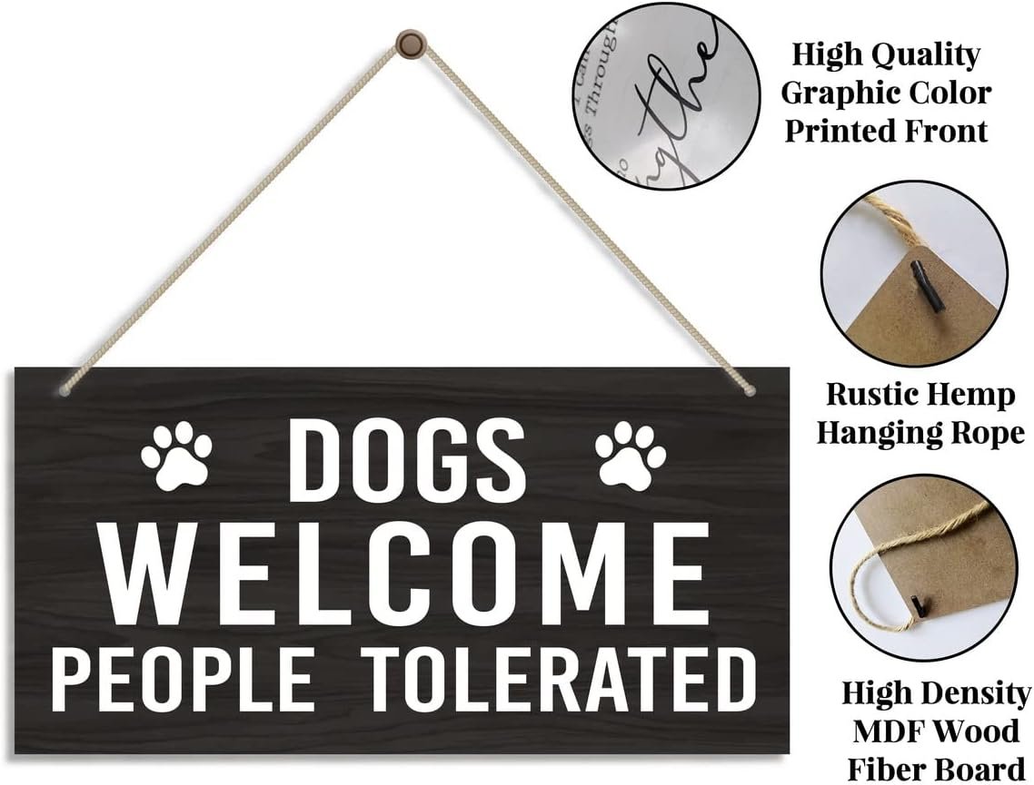 Dog Wall Art Sign Decor, Dogs Welcome People Tolerated, Dog Welcome Sign for Font Door Outside Decor Dog Hanging Wood Wall Art Sign Home Decoration, Housewarming Gifts for Dog Mom Dad Owner Lover