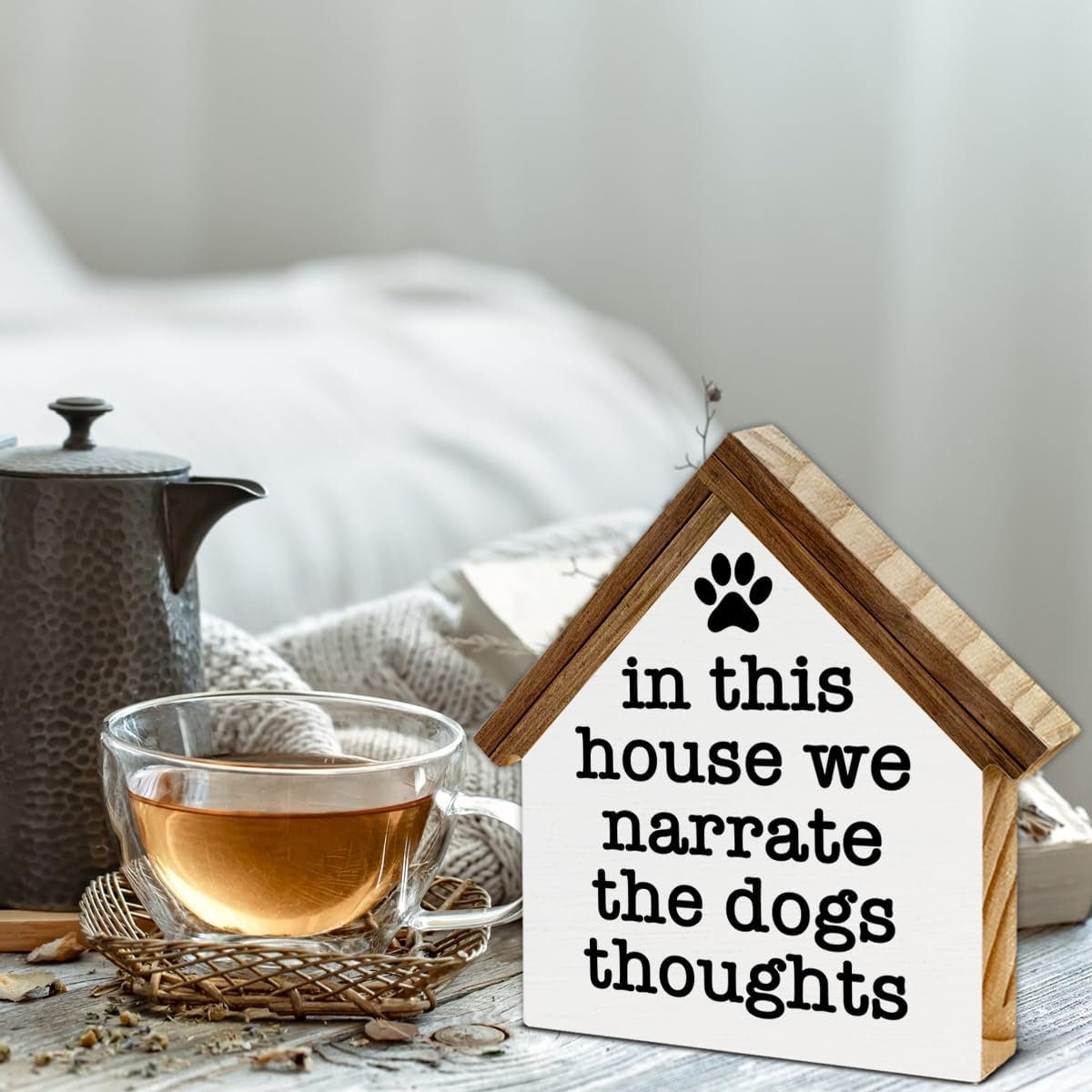 Dogs Sign Decor in This House We Narrate the Dogs Thoughts Wood Block Sign Home Decor Dog House Shape Wooden Sign Living Room Desk Shelf Tiered Tray Decoration