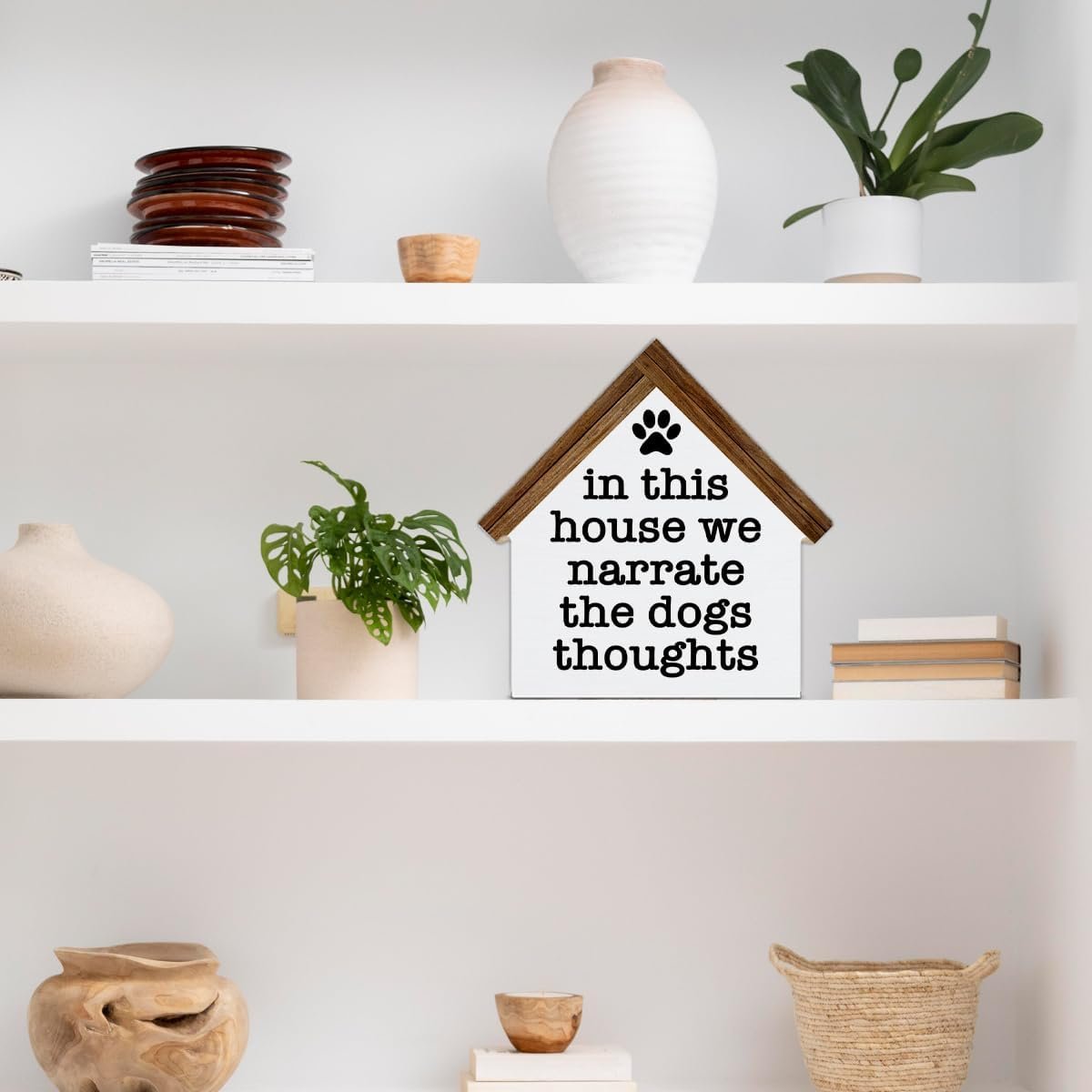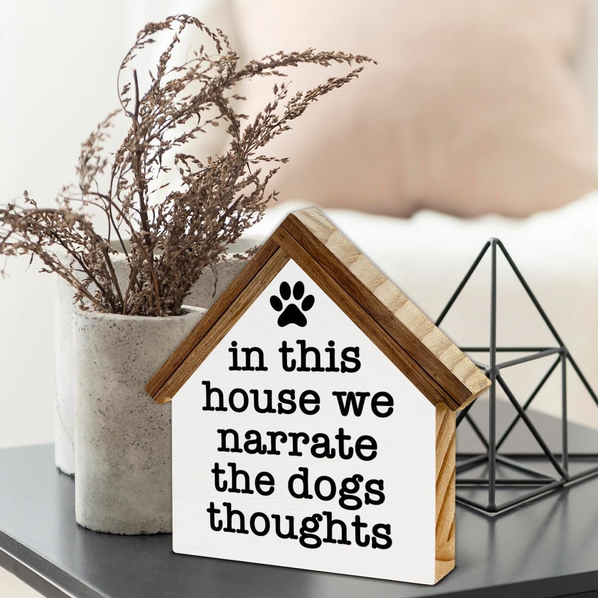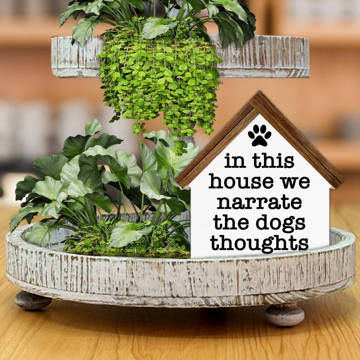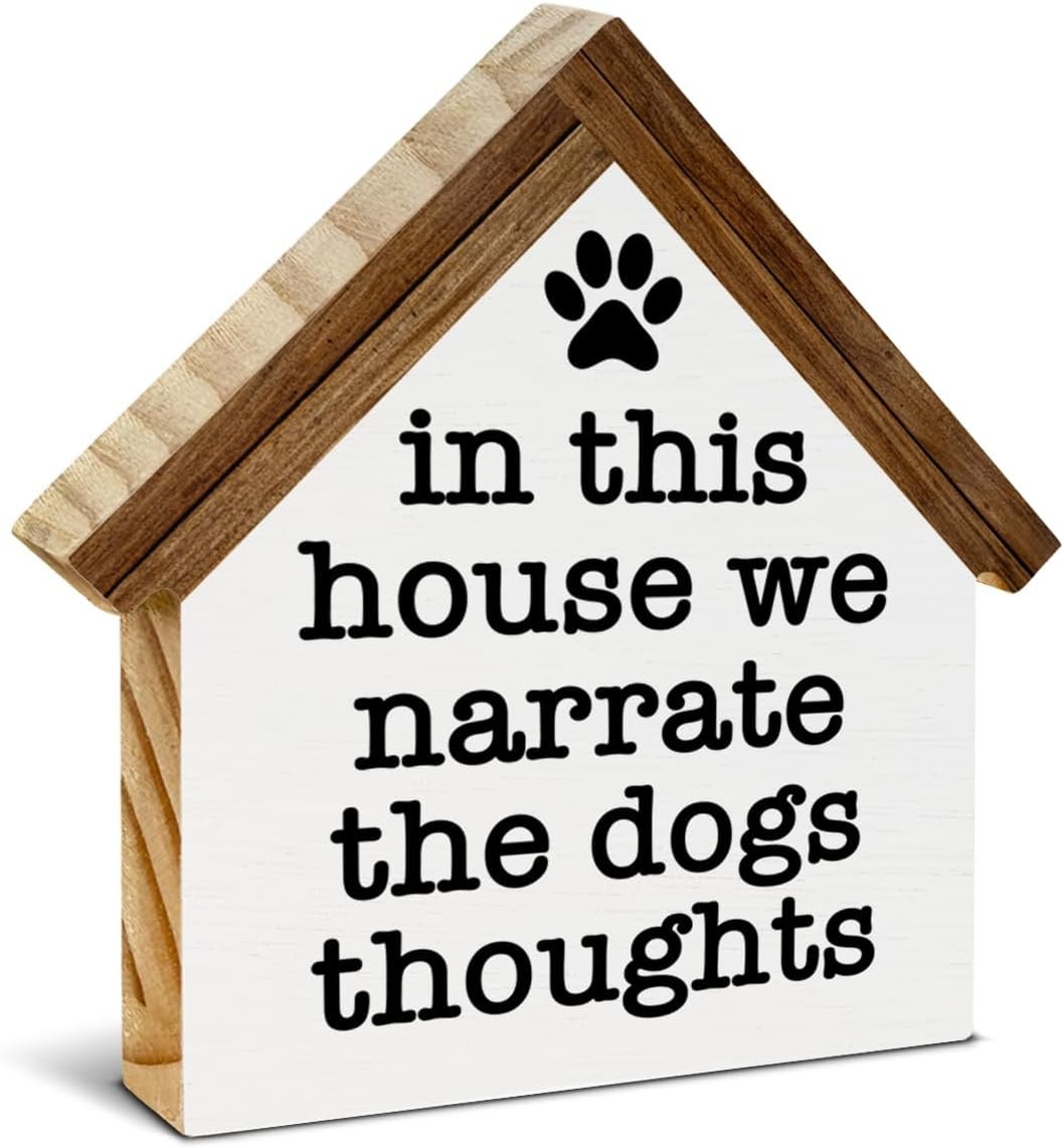 7 reviews for Dogs Sign Decor in This House We Narrate the Dogs Thoughts Wood Block Sign Home Decor Dog House Shape Wooden Sign Living Room Desk Shelf Tiered Tray Decoration