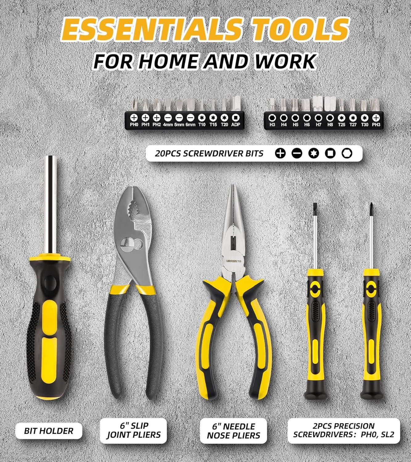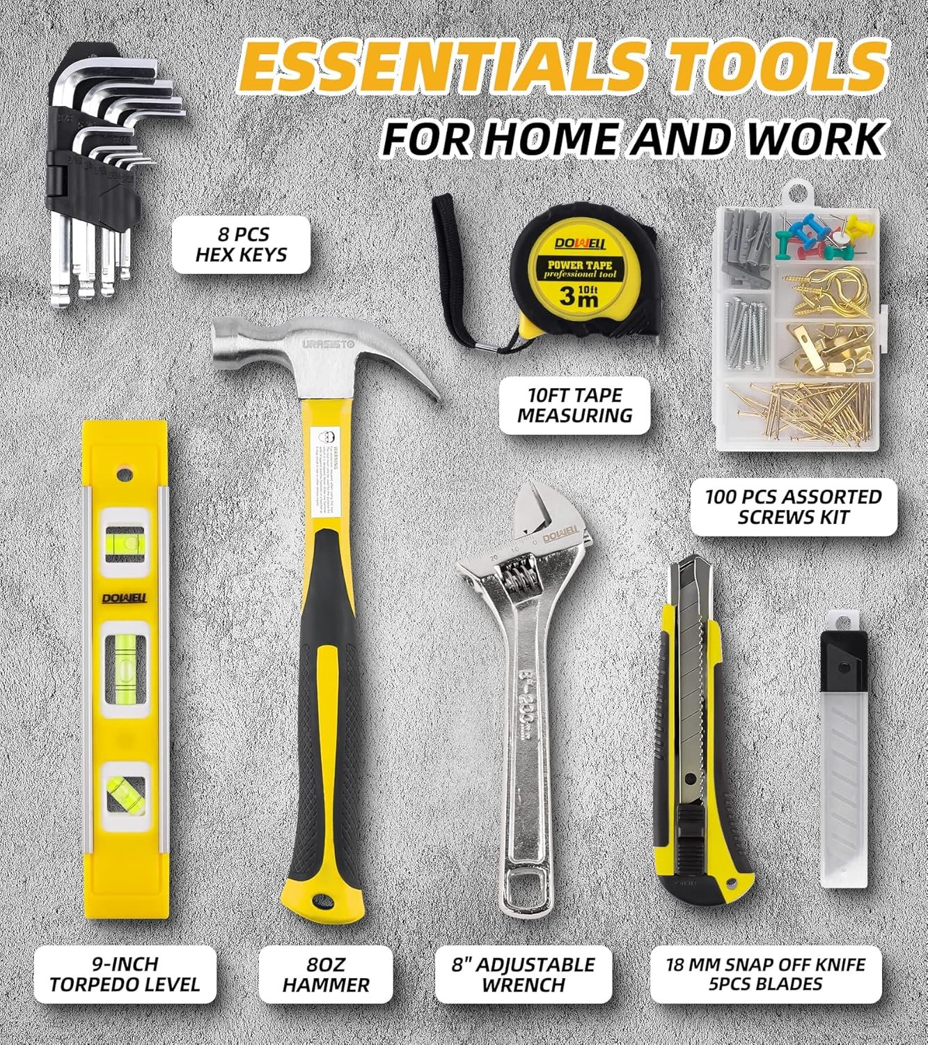 DOWELL 146PCS Homeowner Tool Set, Household Repairing Tool Kit with 14-Inch Wide Mouth Open Storage Tool Bag