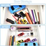 8 reviews for Drawer Organizers Set of 15, 4 Sizes Clear Plastic Drawer Organizers and Storage Bins for Kitchen, Bathroom, Office, Dresser Desk Drawer Organizer Tray for Jewelry, Makeup, Junk, Gadgets