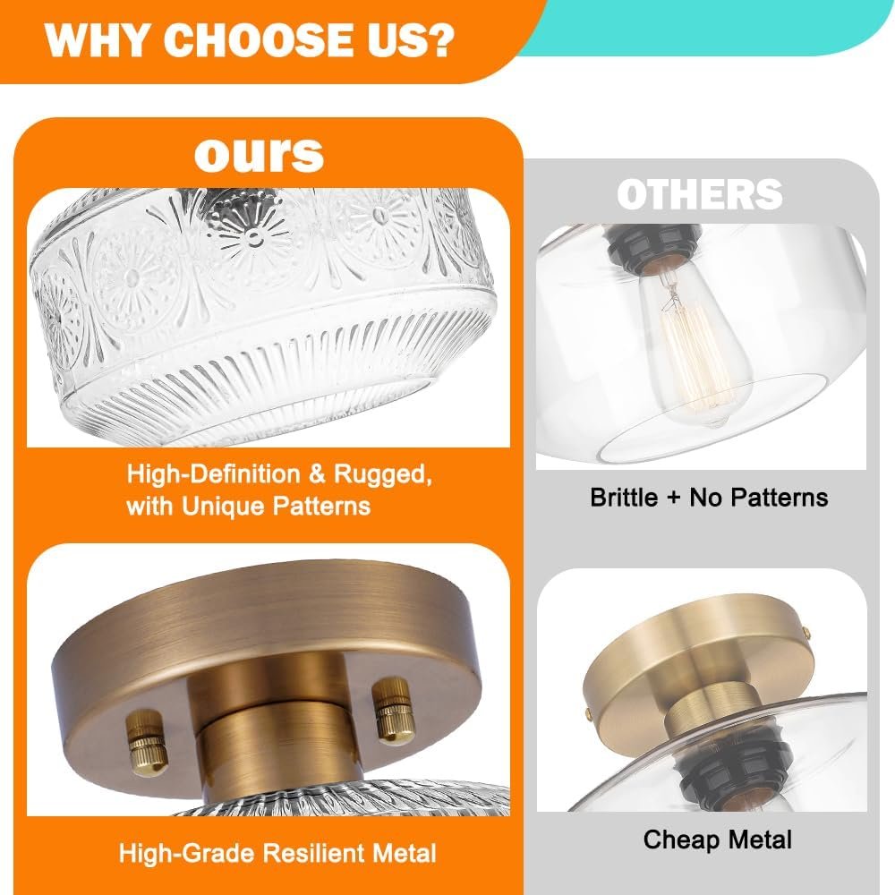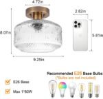 8 reviews for DSMJFU Semi Flush Mount Ceiling Light, Vintage Small Ceiling Light Fixture, Thickened Glass Hallway Lighting Fixture, Brass Kitchen Ceiling Mount Light for Entry Way, Bedroom, Bathroom, Porch