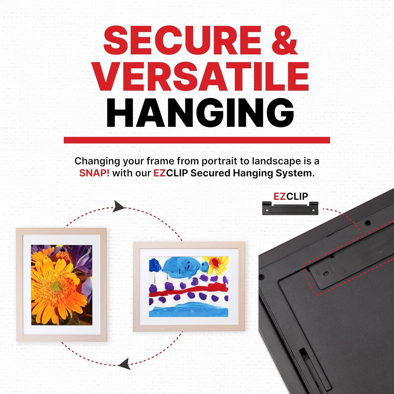 These are well made and most importantly were designed around the size of the paper art is being made on. I researched so many competitor products and that was not the case. Why should I cut or fold the art down?These seem sturdy and provide two ways to hang – with the clip to be able to rotate for horizontal or vertical needs. We needed fixed orientation so skipped the clips and used the fixed holes. Given we were doing a gallery wall my husband needed to use laser level for aligning and hanging.I choose the 14.75×20.75 and 11.75×14.75 to hold the larger sizes of paper but could double up if the art was smaller. We also made sure to have a variety of horizontal and vertical options. So far this is working great with our Alex Show 21 as the center piece (with a matching white frame).