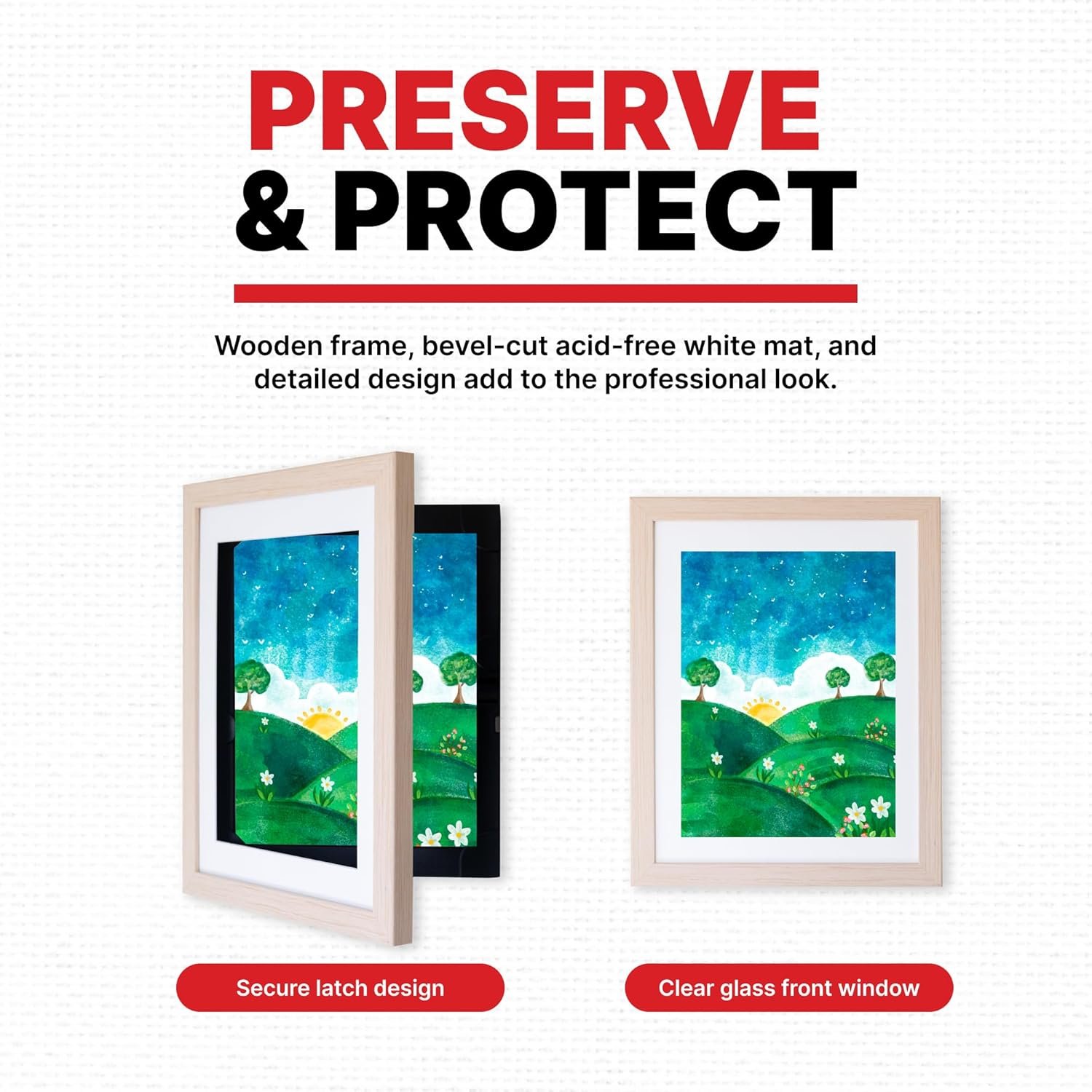 These frames are a perfect way to display art and keep art preserved. My grandson loves seeing his creations displayed on our wall. I bought two and love the quality of the frames. Easy to mount and easy to change the art work. I’m buying some for my friends who have kids and grandkids!