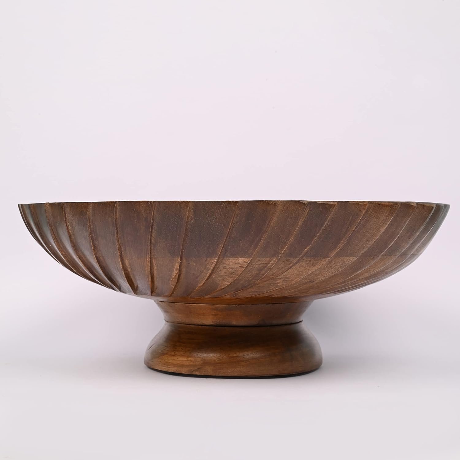 EDHAS Mango Wood Decorative Wooden Bowl Hand Carved Home Decor for Dining Table Center, Living Room, Kitchen Décor (12″ x 12′ x 4.75″)