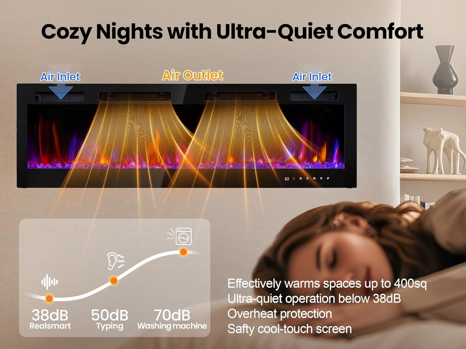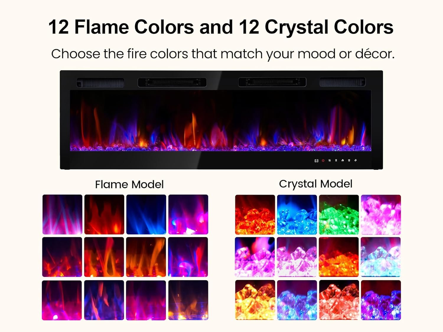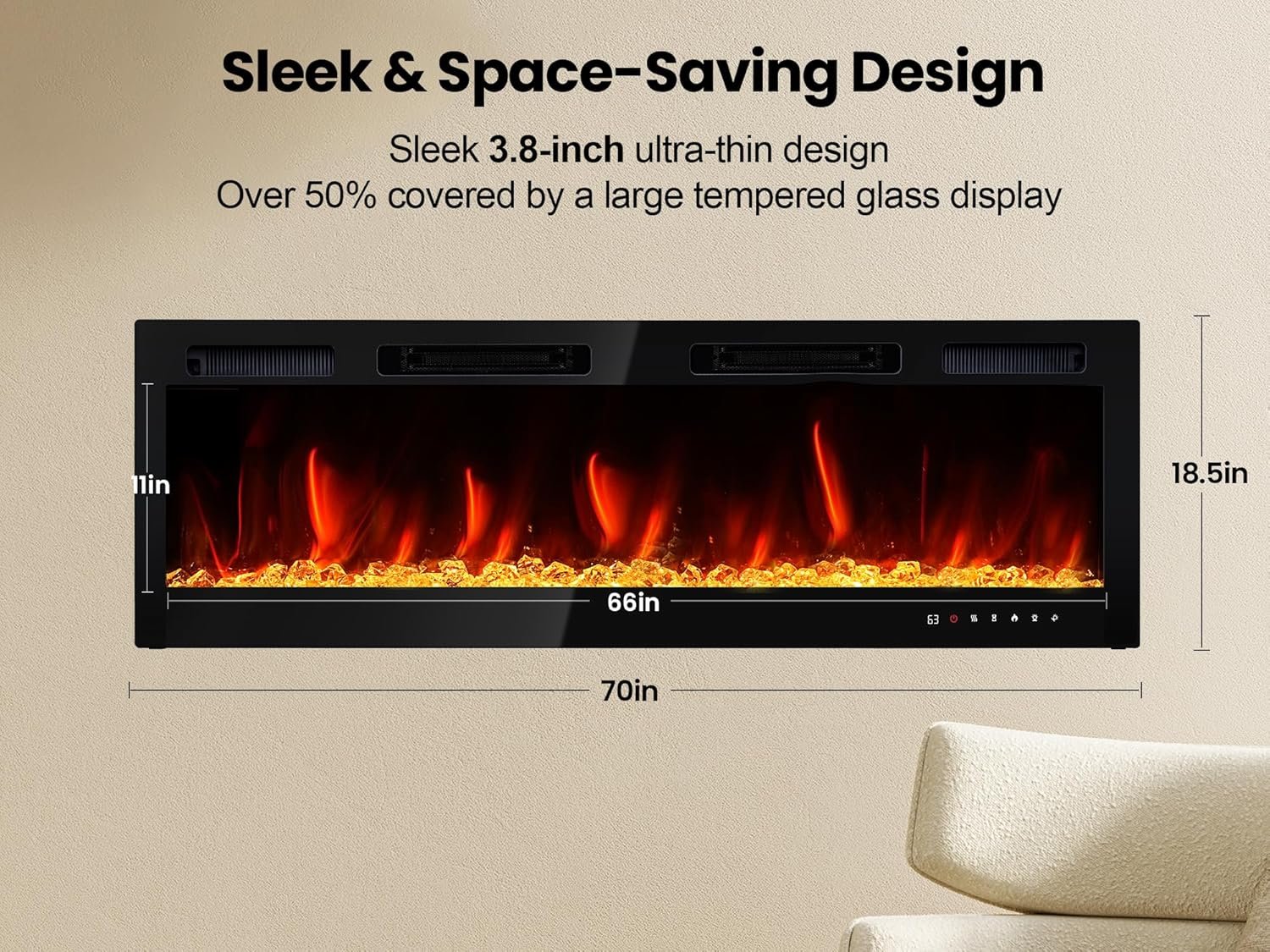 11 reviews for Electric Fireplace Insert 70″ Realsmart 1500W Wall Mounted Electric Fireplaces Recessed Heaters Remote Control Slim Black Fireplace Touch Screen Timer 12 Flame Colors LED Decor Low Noise