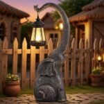 This elephant solar lamp is absolutely adorable! The light is just enough and it looks nice on my patio. The only disappointment is that it is not very heavy, so if there is any wind more than a slight breeze it falls over. I have to pick it up and stand it upright a few times a week. I have started bringing it inside if storms are expected. I’d hate for it to blow away.