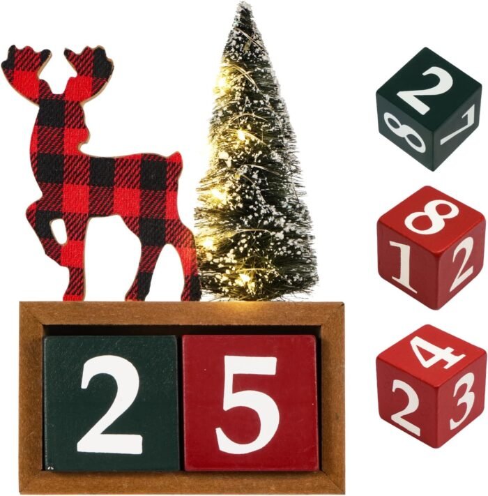 13 reviews for Elk Christmas Tree Count Down LED Lighted 99 Days Advent Calendar Farmhouse Vintage Rustic Block Winter Holiday Decorations for Home Table House Kitchen