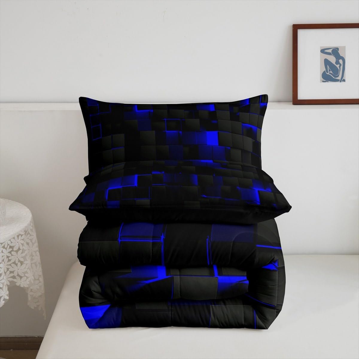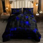 8 reviews for Erosebridal Black Navy Royal Blue Comforter Set Twin Neon Geometric Checkered Bedding Set for Teen Boys Gamer Room Decor,Abstract Stereoscopic Grids Quilt Square Plaid Check Bed Set 2 Pcs