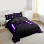 13 reviews for Erosebridal Gaming Comforter Set for Boys Gamer Comforter,Game Contoller Bedding Home Decor for Kids Men Video Game Bed Set,Neon Lights Gamepad Duvet Set,Purple Grey Hexagon Honeycomb Bedding,Queen