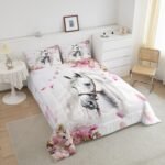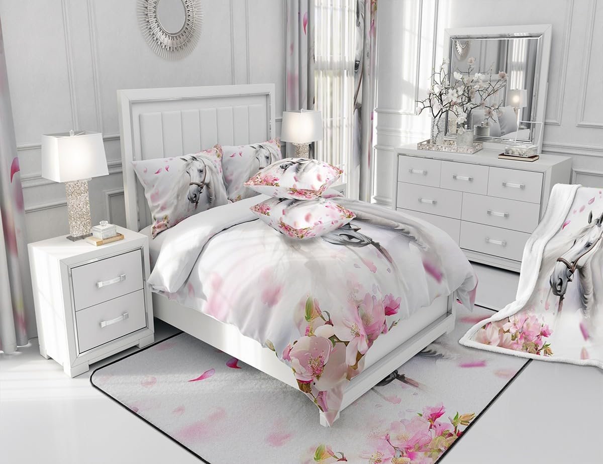 13 reviews for Erosebridal Girls Horse Comforter Set Twin Chic Cherry Blossom Bedding Boys Teens Galloping White Duvet Insert 3D Wild Animal Quilts Western Rustic Farmhouse Style Bedroom Decor 2 Pcs