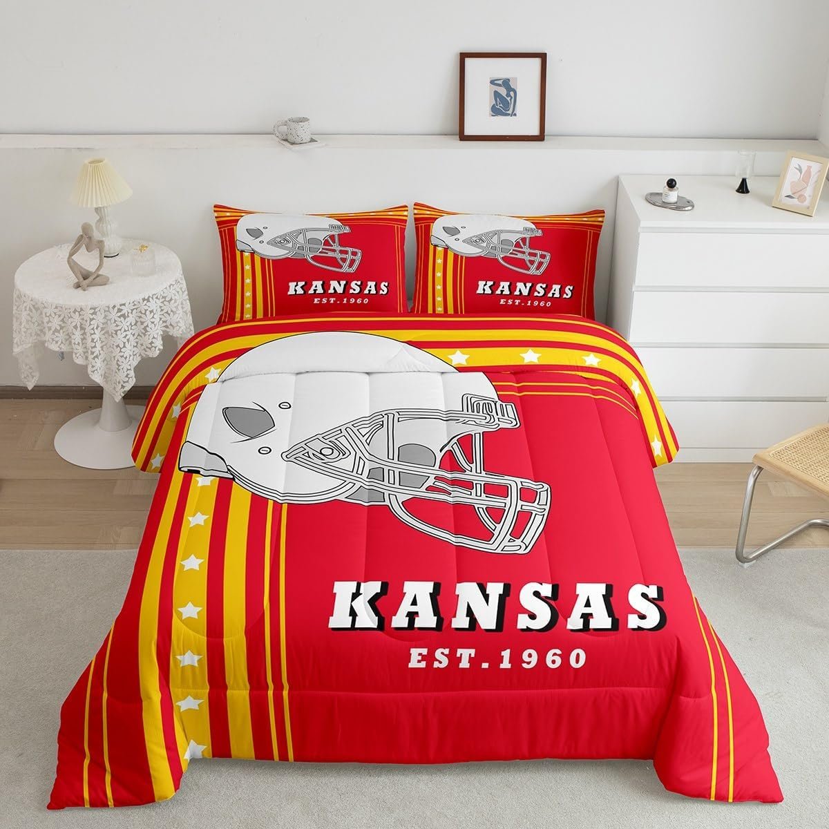 Erosebridal Gridiron Comforter Set Rugby Decor Sports Game Bedding Comforter Sets Twin, Boys Football Bedding Red Yellow White Stars Stripes Duvet Insert 2Pcs