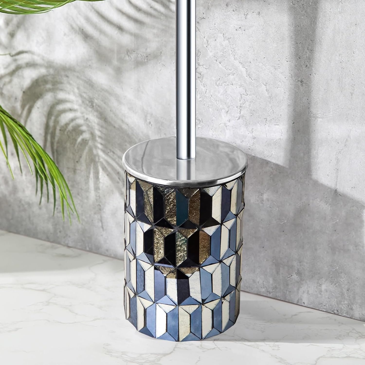 9 reviews for Escenzy Cute Toilet Brush and Holder Set Mosaic Glass | Non-Rustic Stainless Steel | Practical & Decorative Toilet Bowl Brush and Holder | Luxury Black and Gold Bathroom Accessories (Latest)