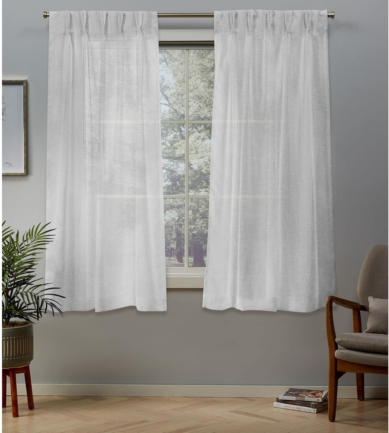 13 reviews for Exclusive Home Curtains Belgian Textured Linen Look Jacquard Sheer Pinch Pleat Curtain Panel Pair, 63″ Length, Winter White,EH8325-02 2-63P,2