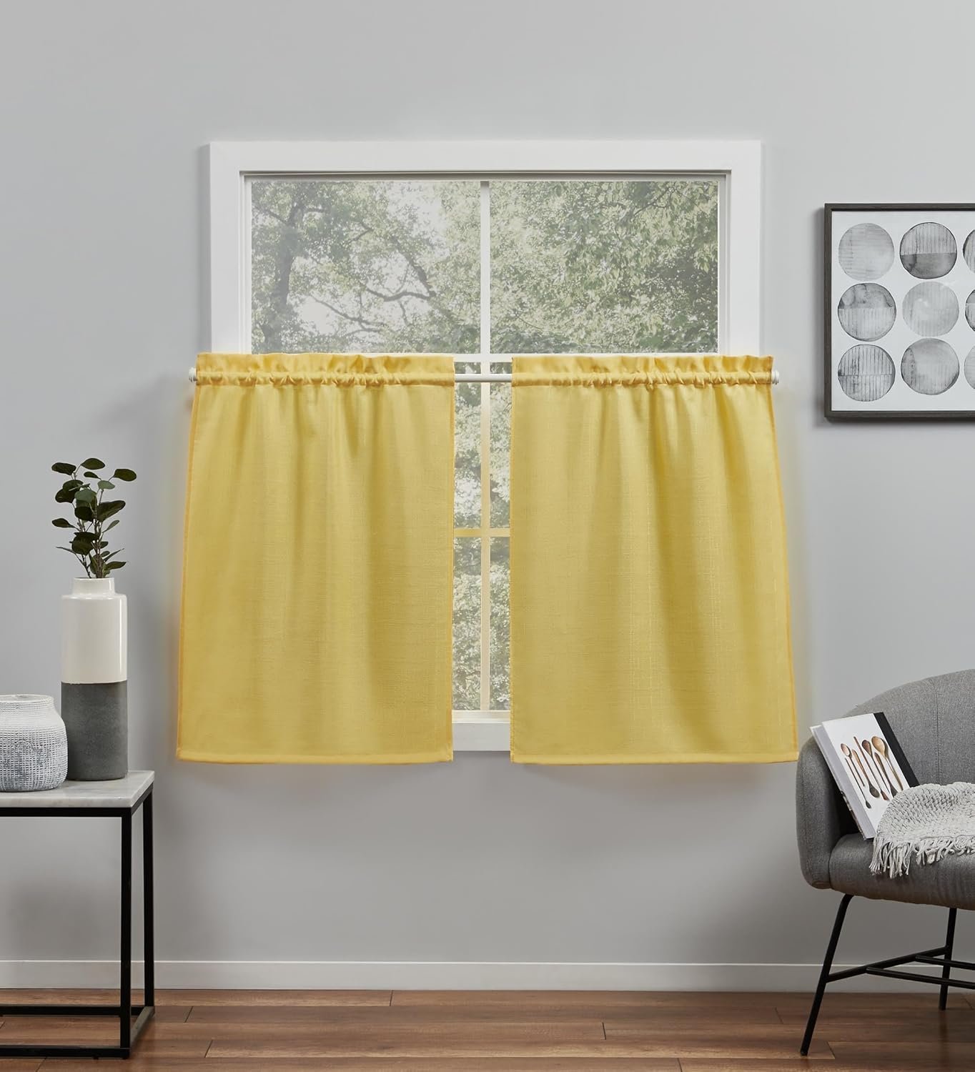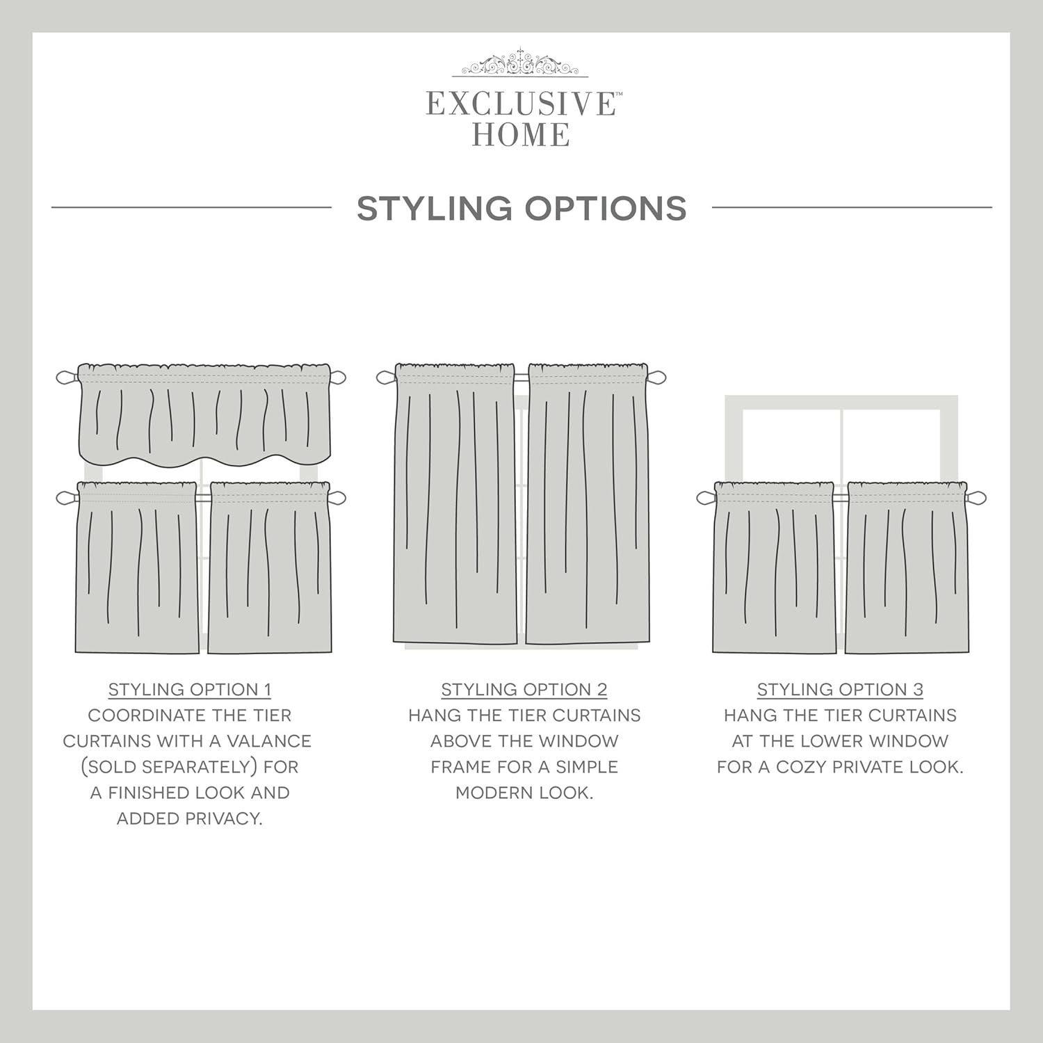 Exclusive Home Loha Light Filtering Rod Pocket Tier Curtain Panel Pair, 26″x24″, Sunbath, Set of 2