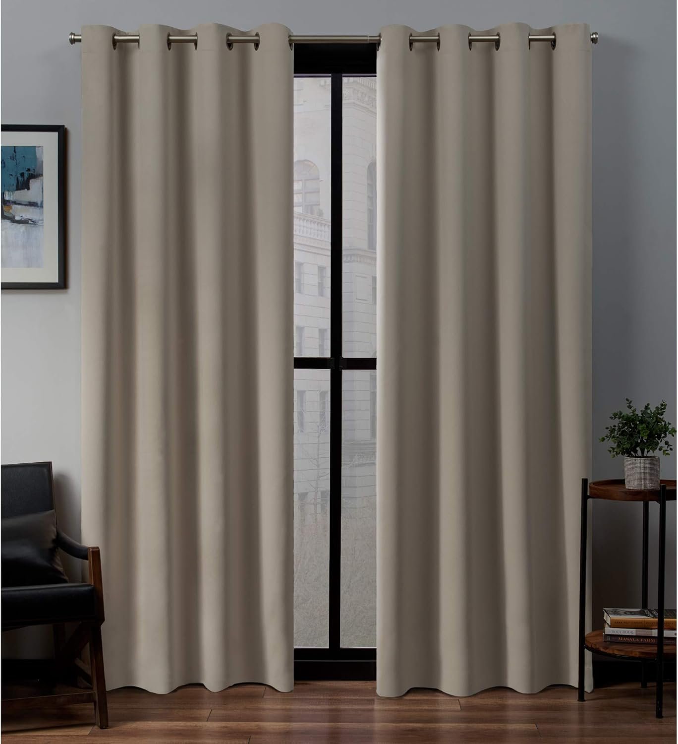 13 reviews for EXCLUSIVE HOME Sateen Twill Woven Room Darkening Blackout Grommet Top Curtain Panel Pair, 52″x84″, Stone