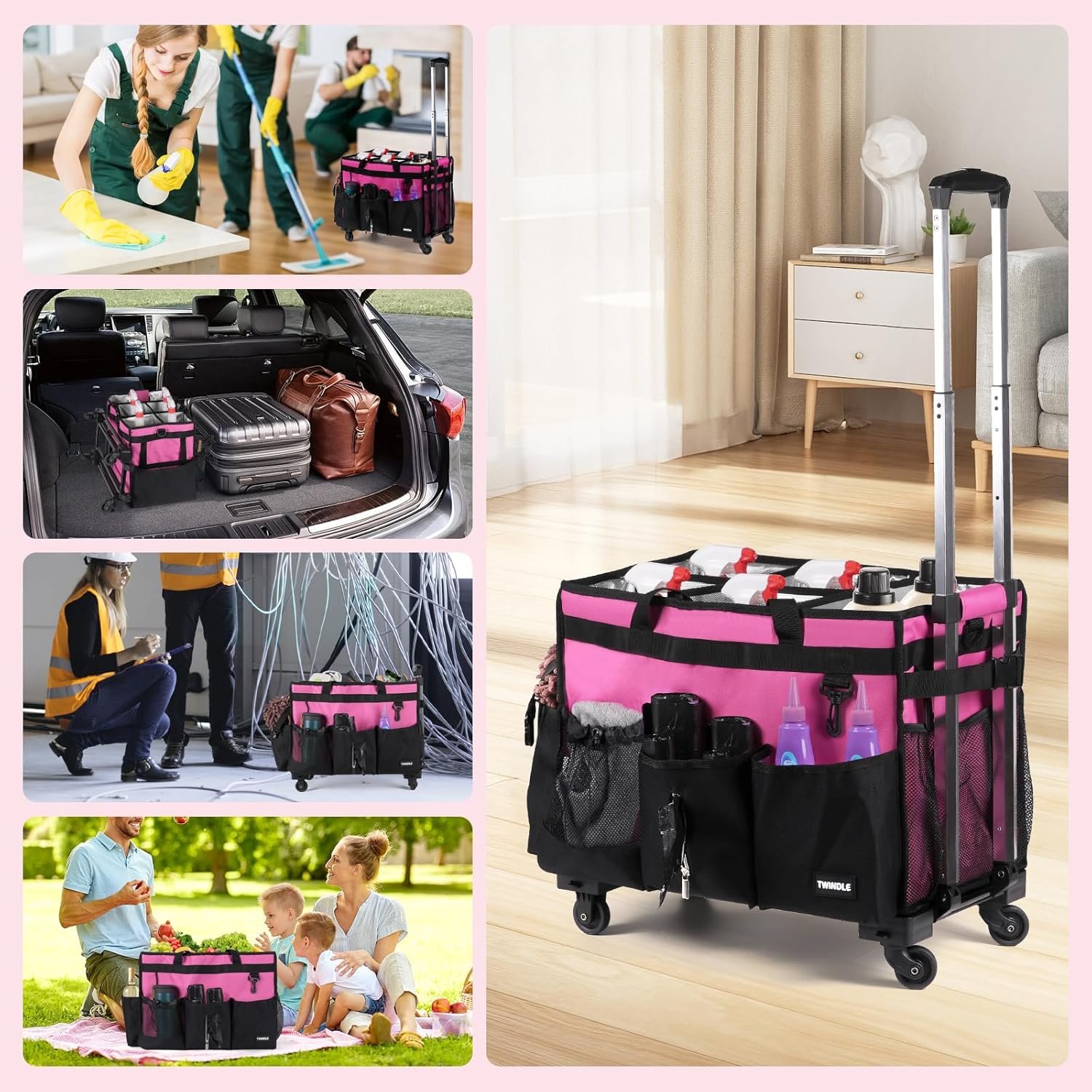 9 reviews for Extra-Large Rolling Cleaning Caddy with Wheels,Cleaning Caddy Bag with Detachable Trolley,Water Resistant Lining Cleaning Supply Organizer with Handle for Cleaners,Housekeepers