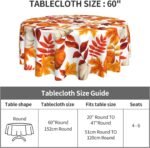 Fall Round Tablecloth 60 Inch Thanksgiving Harvest Autumn Pumpkin Fallen Leaves Maple Leaf Print Decorative Table Cloth Holiday Decorations Seasonal Decor for Home Kitchen Dining Room Picnic Party