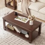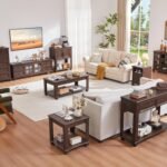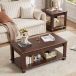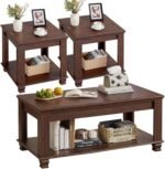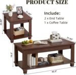 8 reviews for Farmhouse Coffee Table Set of 3,Rustic Wooden Living Room Table Set,Large Coffee/End Side Tables with Open Shelf for Living Room,Walnut