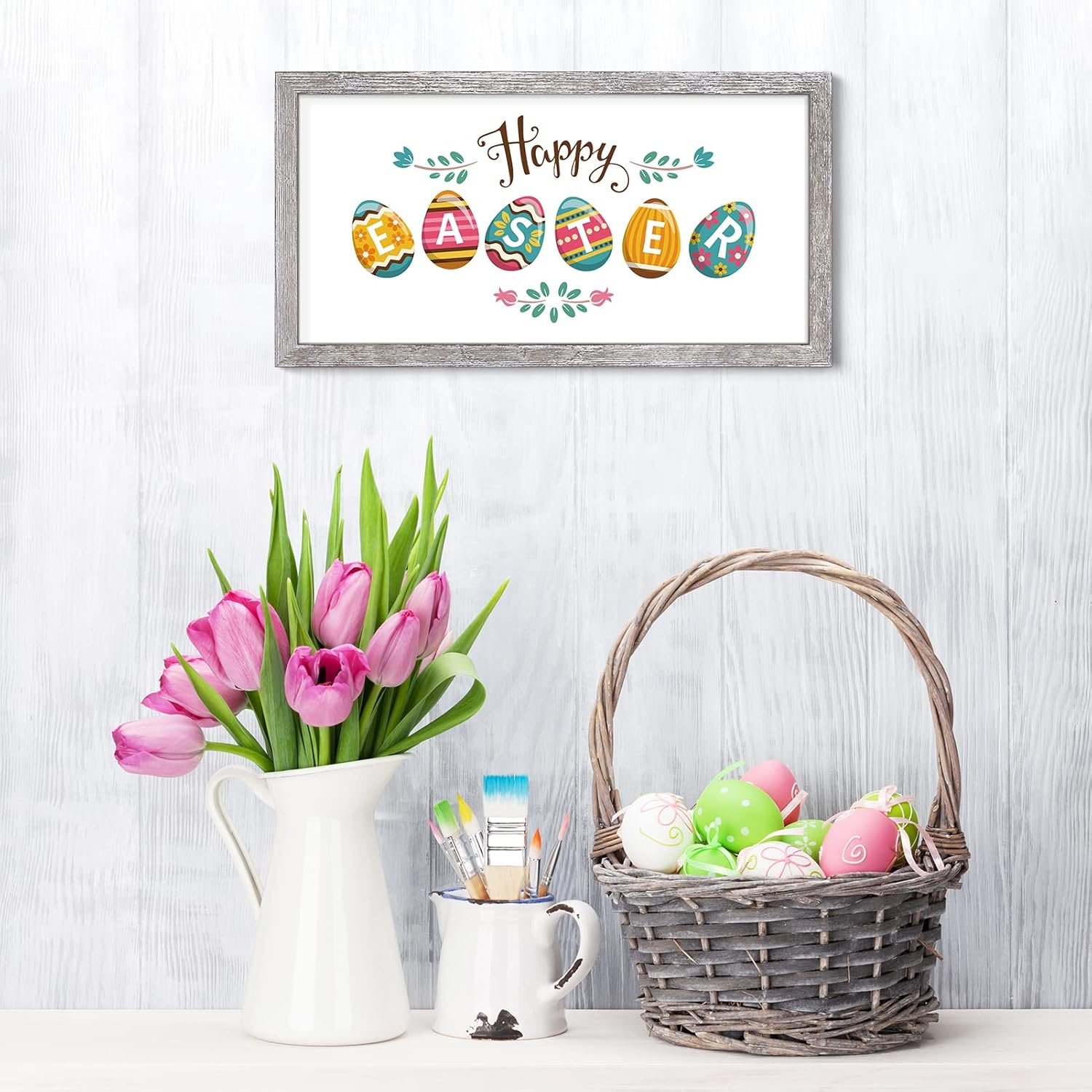 8 reviews for Farmhouse Wall Decor Sign Valentines Day St Patricks Day Decor With 12 Interchangeable Sayings Spring Easter Decoration For The Home For Kitchen Bedroom Living Room Home Decor 9X17” Frame