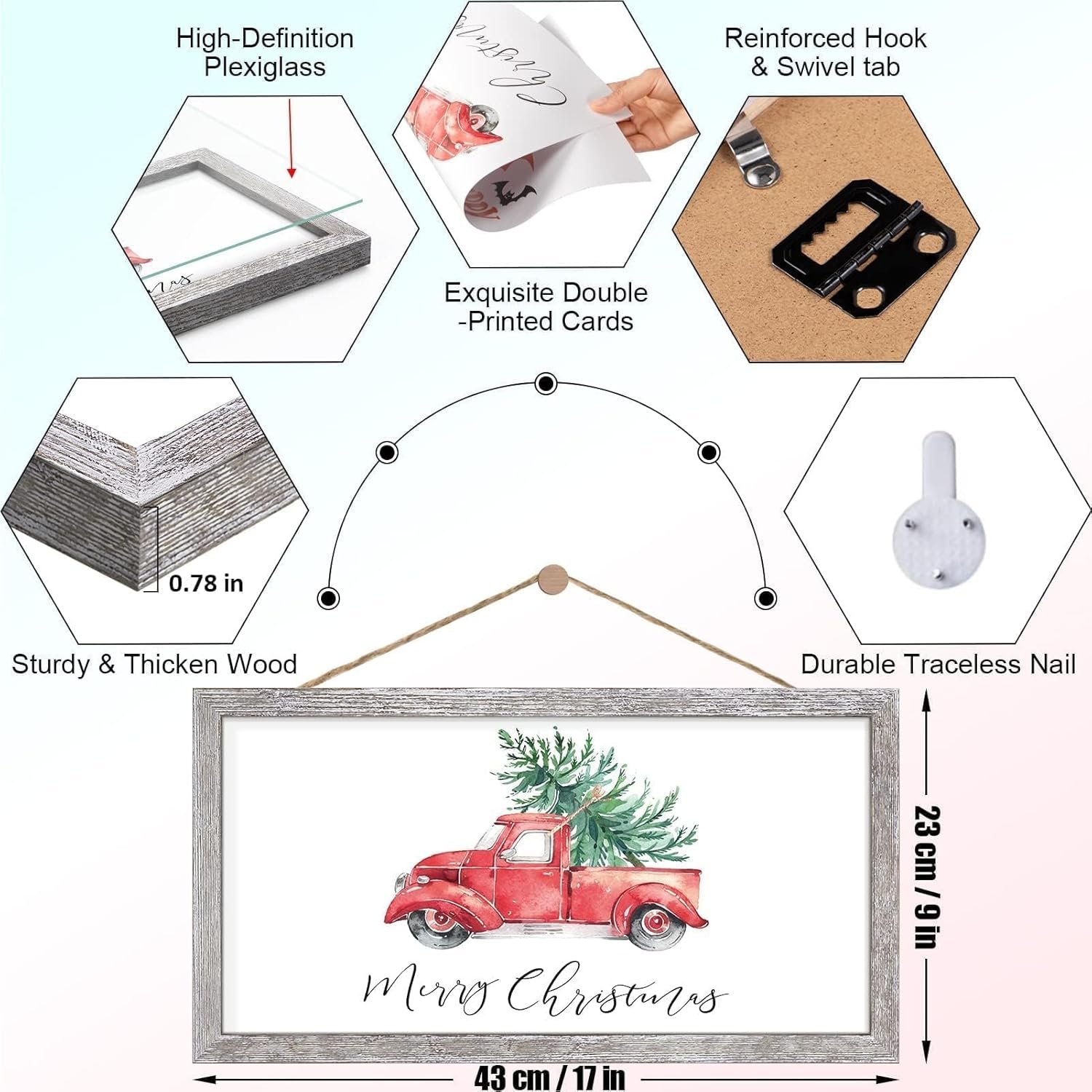 I was sold on this because you can change out the image depending on the season or the holiday. And all of the images are so cute. It’s a great size for my smaller entryway and was very easy to hang up. I get a lot of compliments from family and friends when they come over and they realize a new image has been added to the frame.