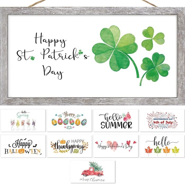 Farmhouse Wall Decor Sign Valentines Day St Patricks Day Decor With 12 Interchangeable Sayings Spring Easter Decoration For The Home For Kitchen Bedroom Living Room Home Decor 9X17” Frame