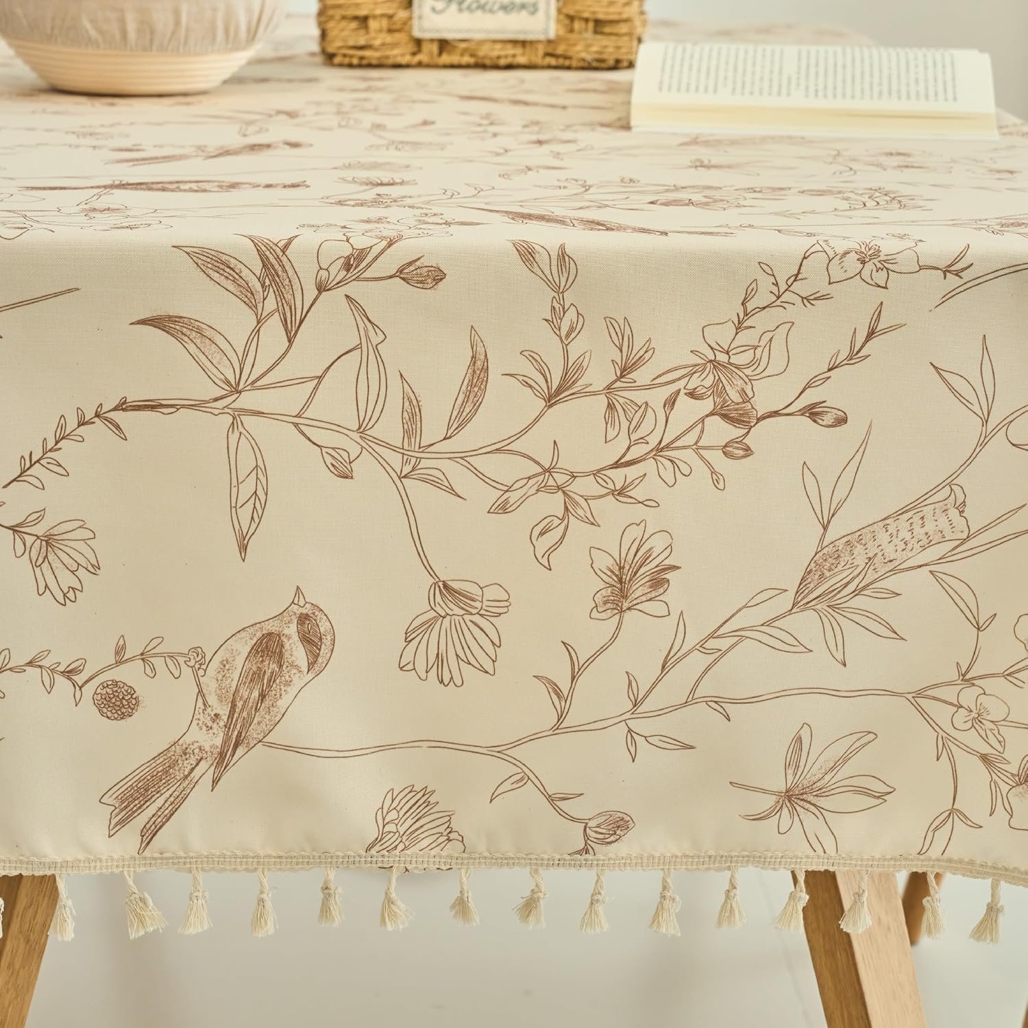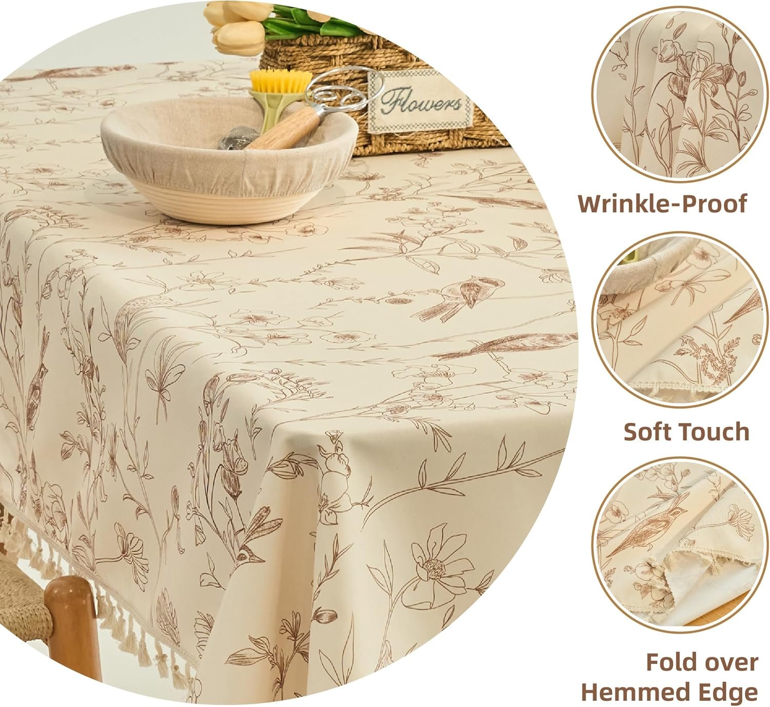 Farmhouse Wipeable Tablecloth Cotton Linen Backing Slip Resistant Flower Pattern Tabletop Vinyl Waterproof Coating Spill-Proof Table Cover Kitchen Party Table Décor Rectangle, 55″×70″(4-6 Seats)