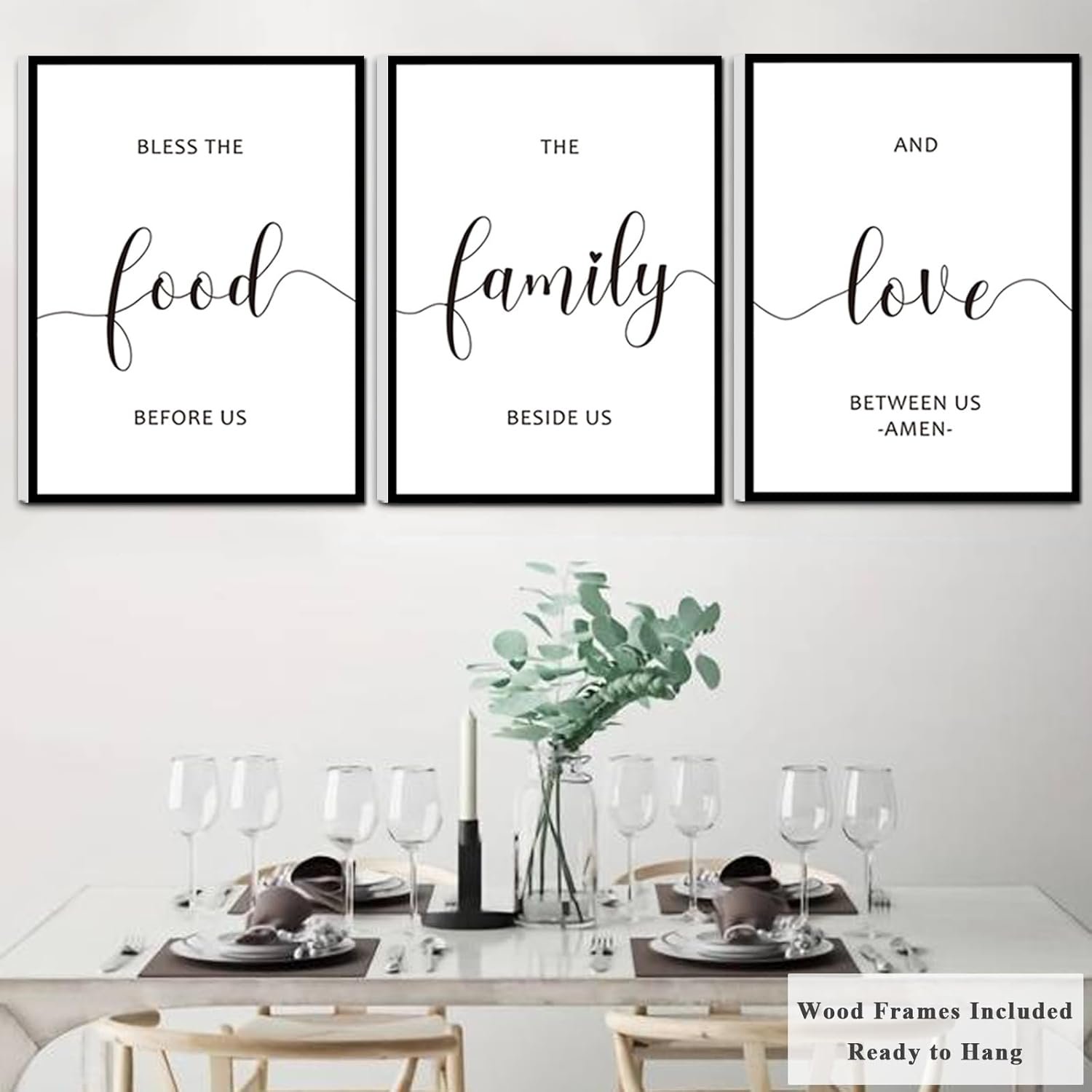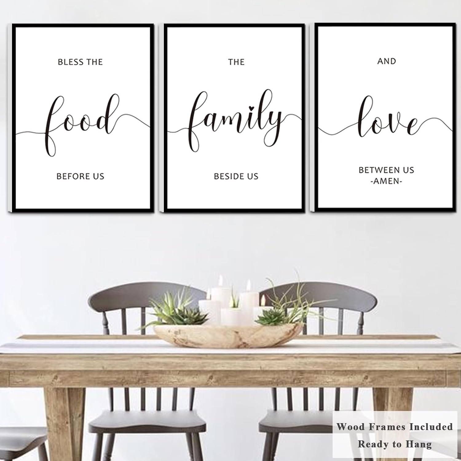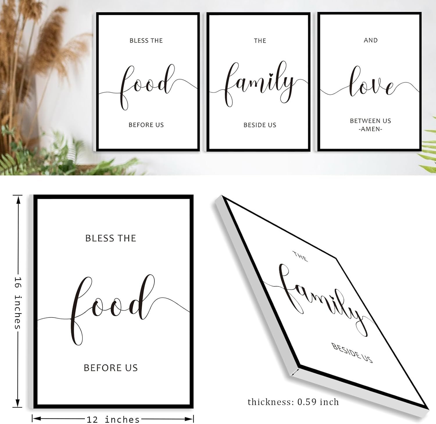 8 reviews for Framed Bless The Food Before Us Wall Decor, 36″ x 16″ Canvas Kitchen Wall Art for Dining Room Wall Decor(12×16 inches, Set of 3, Framed, Black)