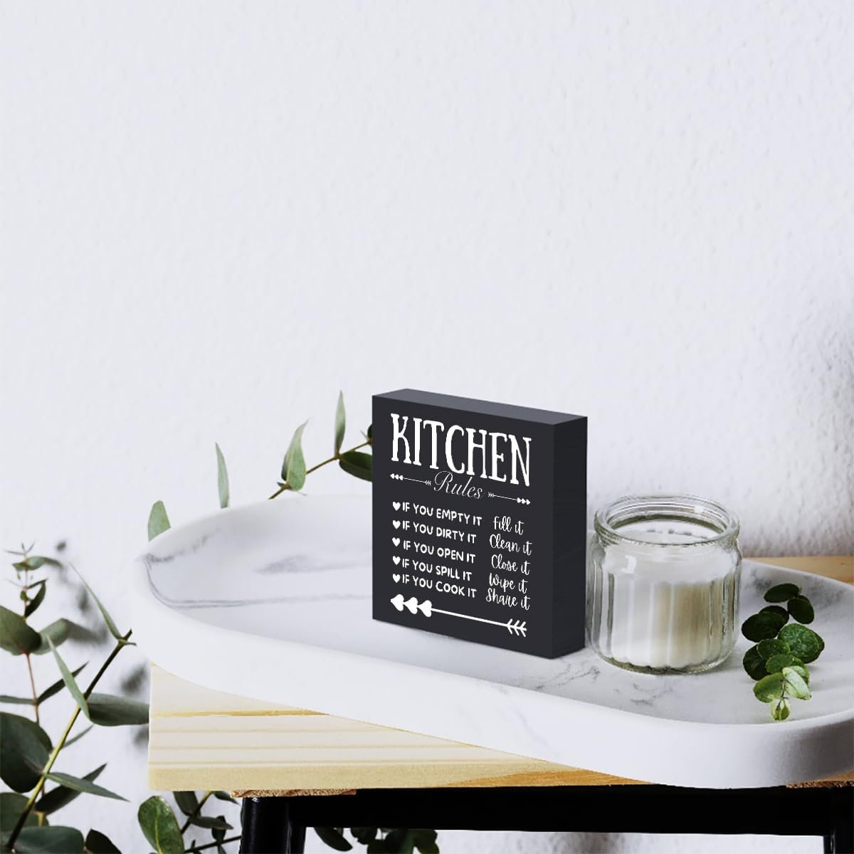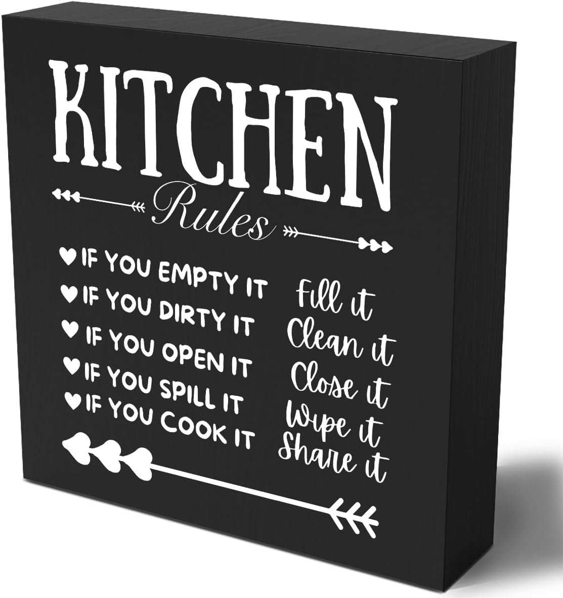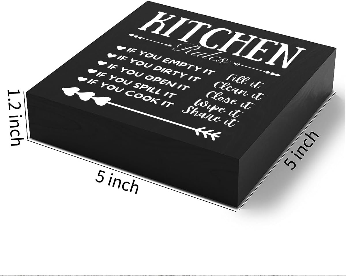 Funny Kitchen Decor Rustic Kitchen Decorations Wood Sign Desk Decor Farmhouse Black Wooden Box Sign for Home Dining Room Coffee Shelf Table Bar Living Room Counter Housewarming Gift
