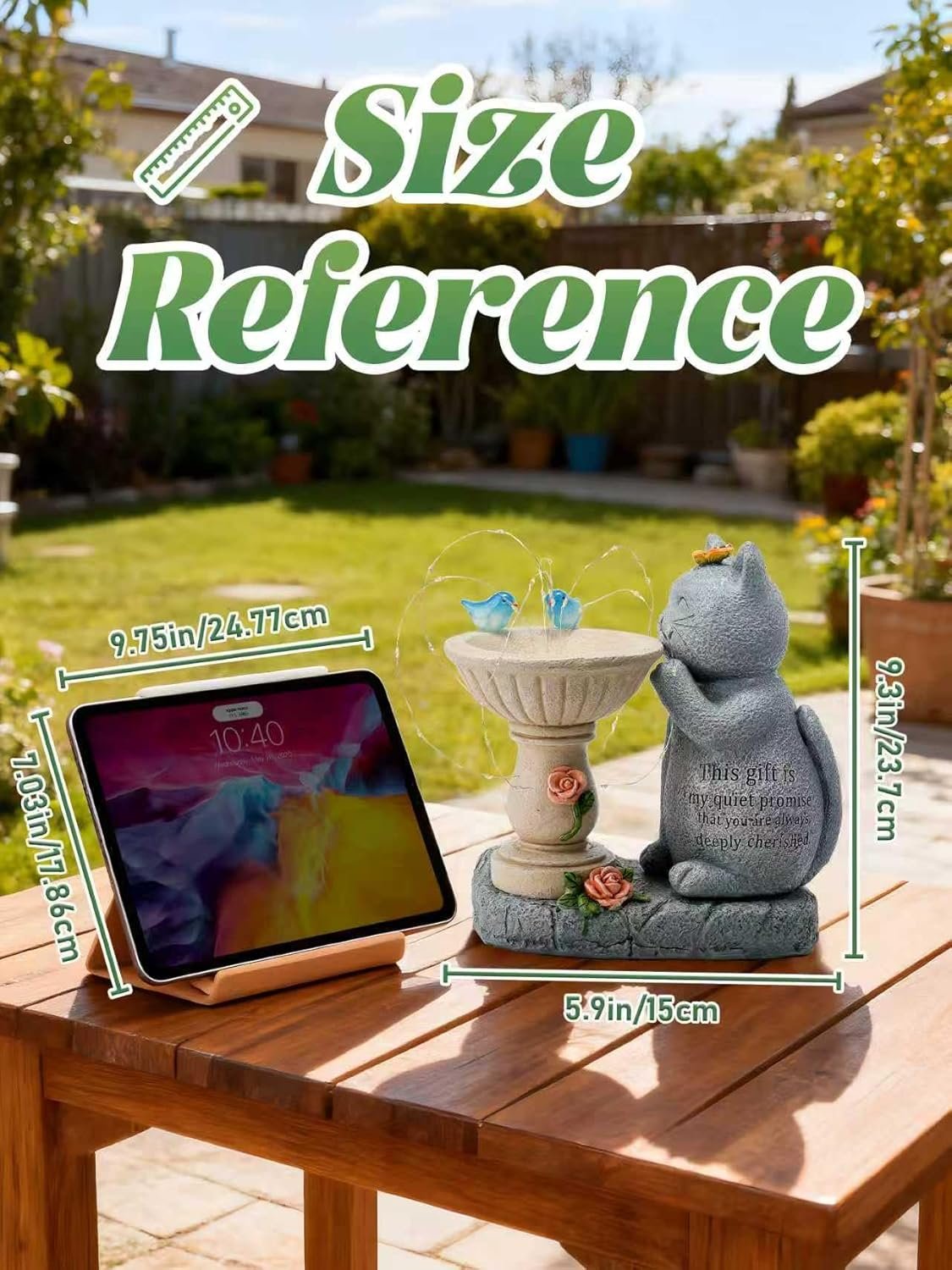 I absolutely love this solar cat birdbath statue! It’s even prettier in person and adds such a peaceful touch to my garden. The lights automatically turn on at night and create a warm, magical glow that looks amazing. It’s sturdy, waterproof, and charges well during the day. Perfect as a gift or for anyone who loves cute garden decor — I couldn’t be happier with this purchase!