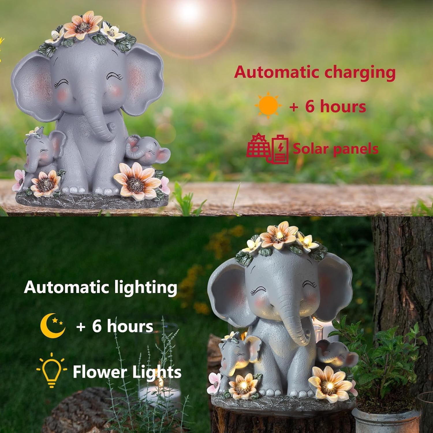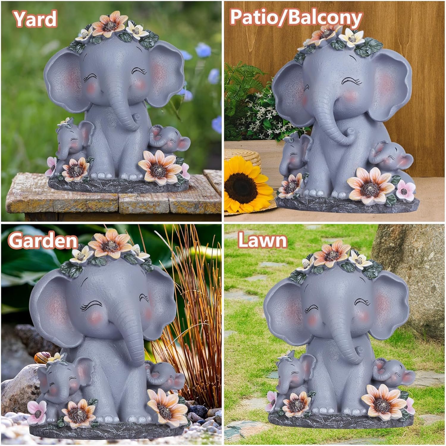 Garden Décor Gifts for Women Elephant Solar Statues Gifts for Mom Patio Décor Grandma Outdoor Sculptures for Lawn Ornaments Balcony Yard House Warming Gifts New Home Mothers Day