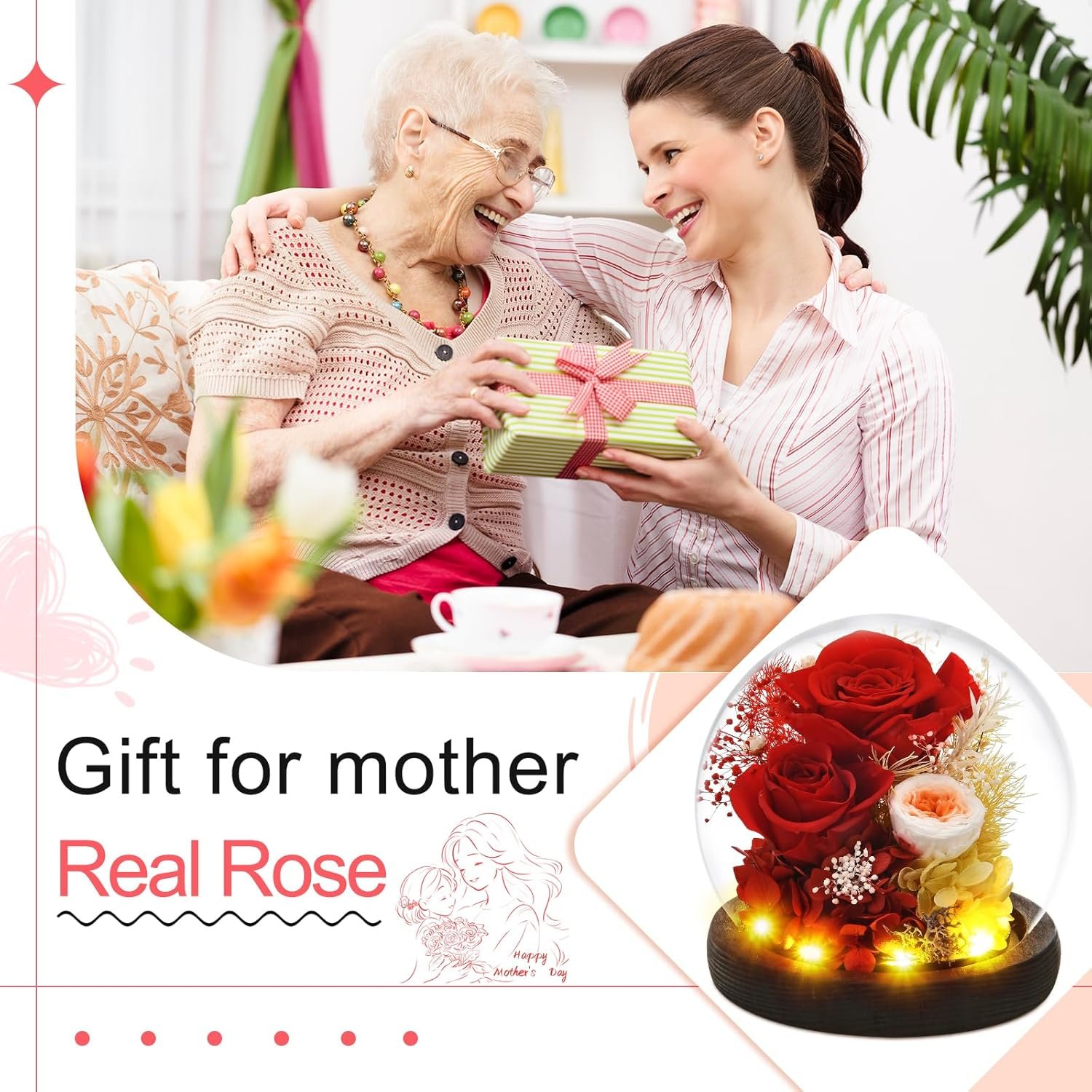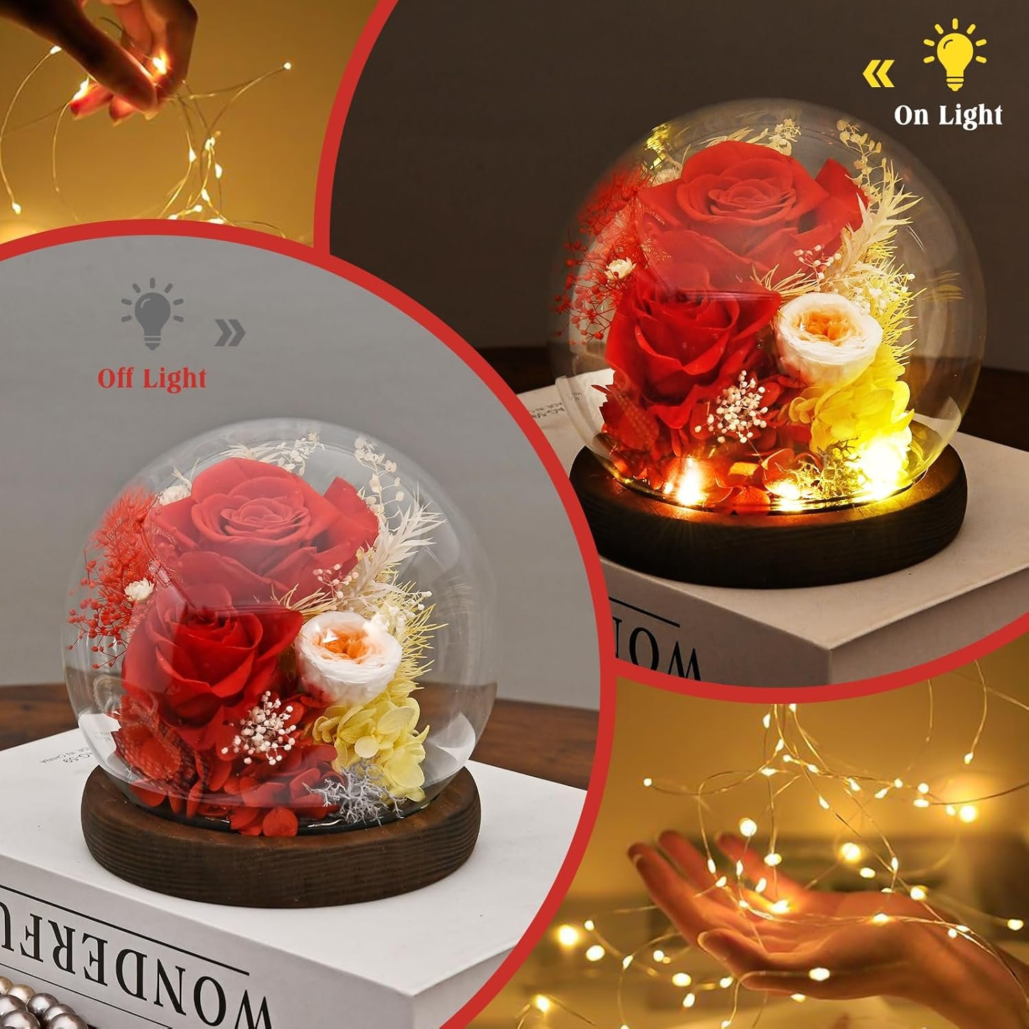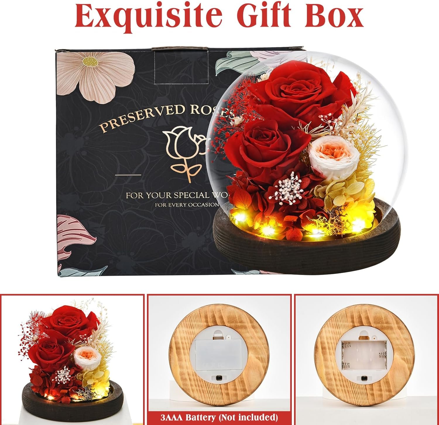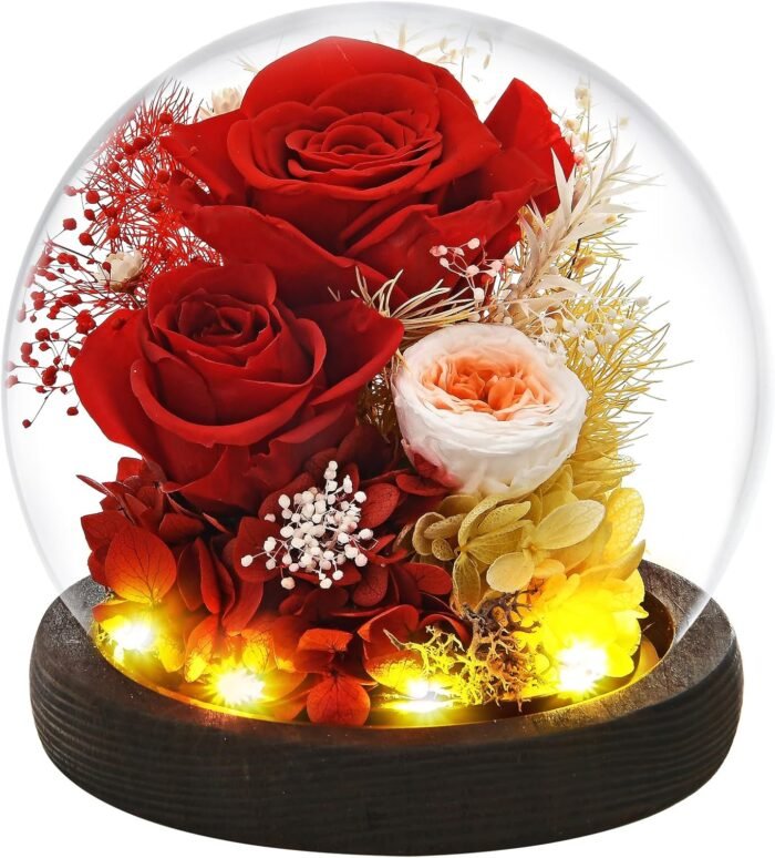 8 reviews for Gifts for Wome, Mom, Grandma, Wife, Preserved Rose Flowers in Glass Dome for Birthday Gifts, Christmas, Anniversary, Wedding, Thanksgiving, Mothers Day, with LED Light (Red)