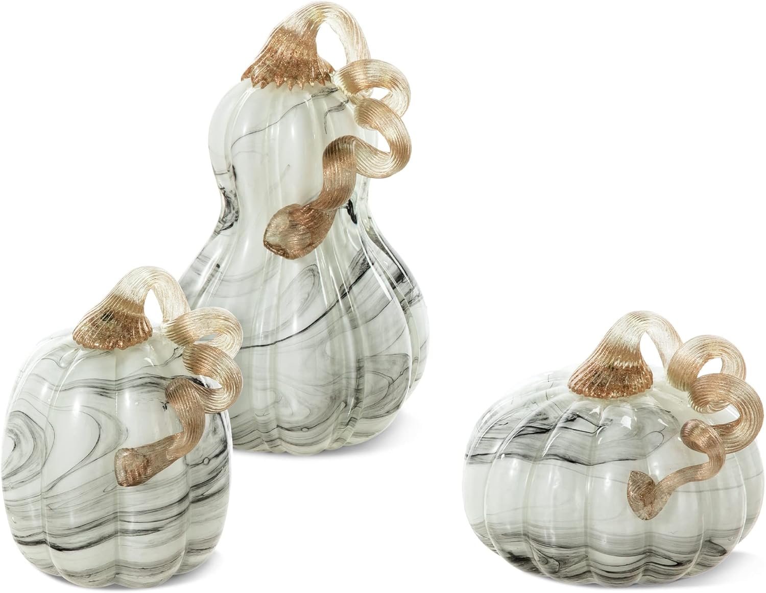 Glitzhome Set of 3 Hand Blown Glitter Glass Pumpkins – Fall Decor for Halloween & Thanksgiving Handmade Table Accent Harvest Home Decor, Gray Marble