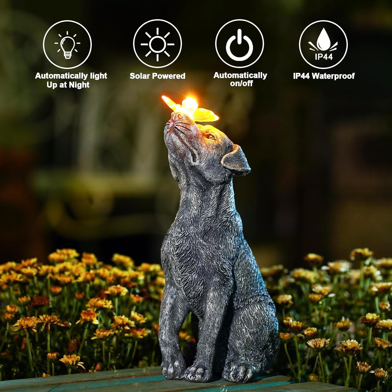 Goodeco Dog Statue with Solar Butterfly – Ideal Gifts for Dad, Mom or Birthdays, Beautifully Crafted Outdoor Decorations to Wow Your Guests