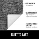 GORILLA GRIP Bath Rug Mat, Thick Soft Absorbent Chenille, Quick Dry Microfiber Mats, Rubber Backing Washable Shower Floor Rugs, Bathmat Runner, US Designed Bathroom Home Decor Accessories 24×17, Grey