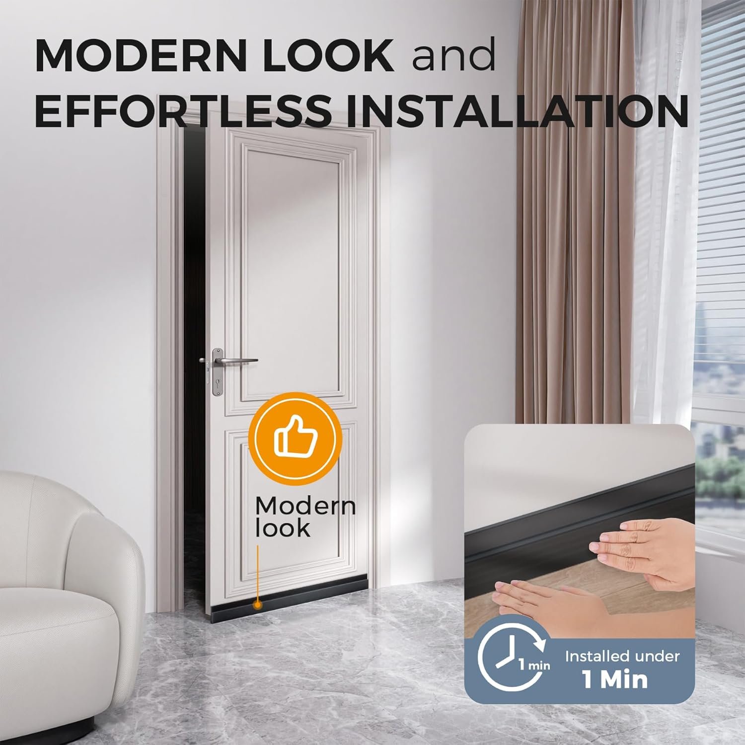 Excellent and easy to install. We removed all carpeting a few yrs ago. Unfortunately, ea door was cut in length to move easily across the plush carpeting. Left us with a big gap at the bottom or better a door which was now too short. The strips block out light under the gab and were easy to install. The doors now look as if they have a molding there we will now install tje same on the other side of ea door
