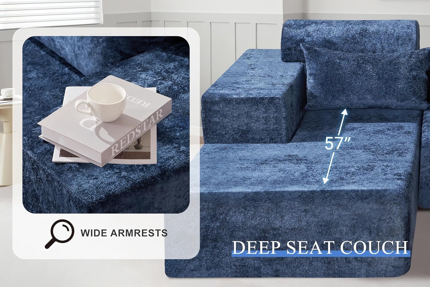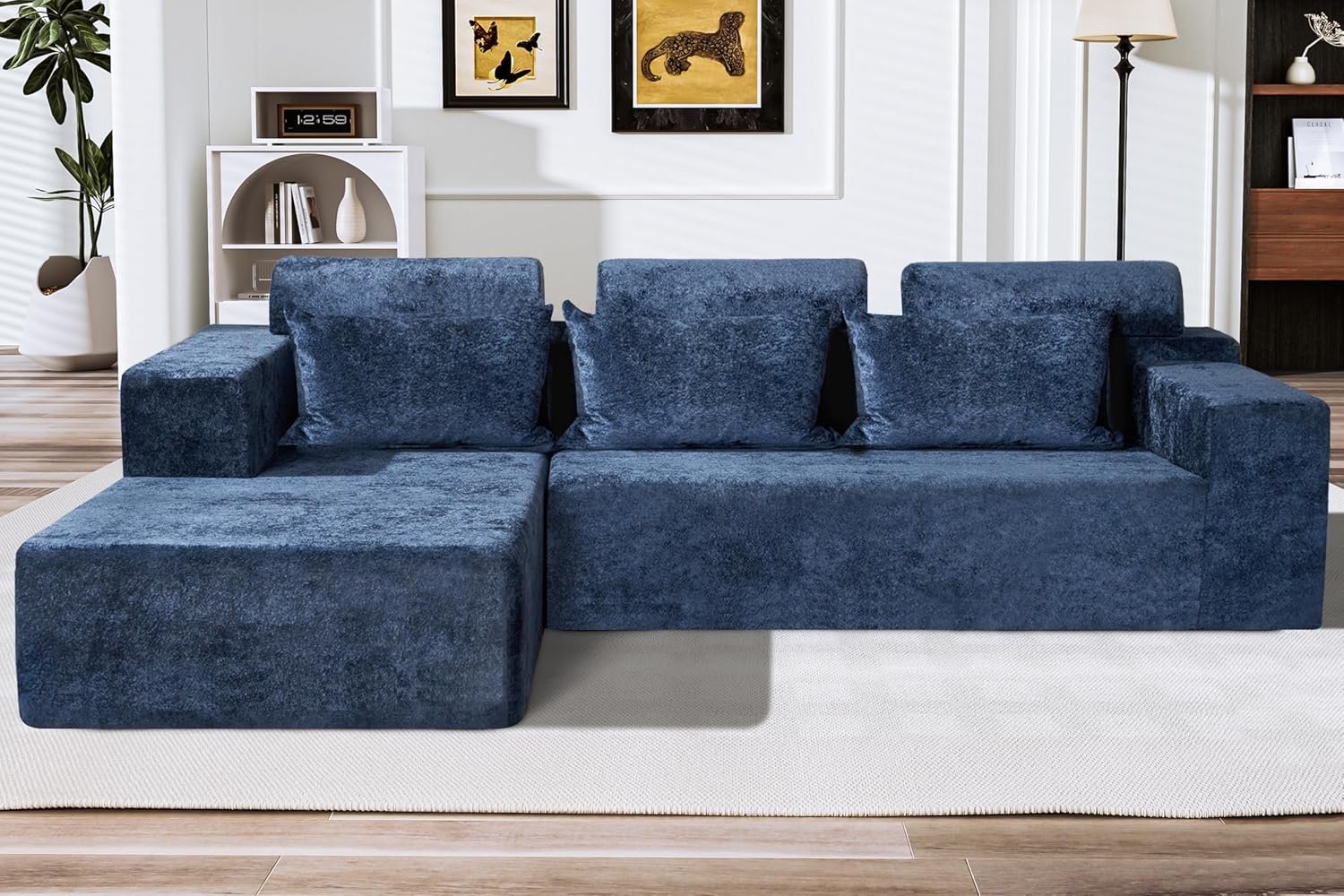 8 reviews for HABUTWAY 105″ L-Shape Modular Sectional Sofa Couch for Living Room,No Assembly Required,Modular Comfy Sofa with Deep Seat for Living Room Bedroom,Luxury Distressed Velvet(Left,Blue)