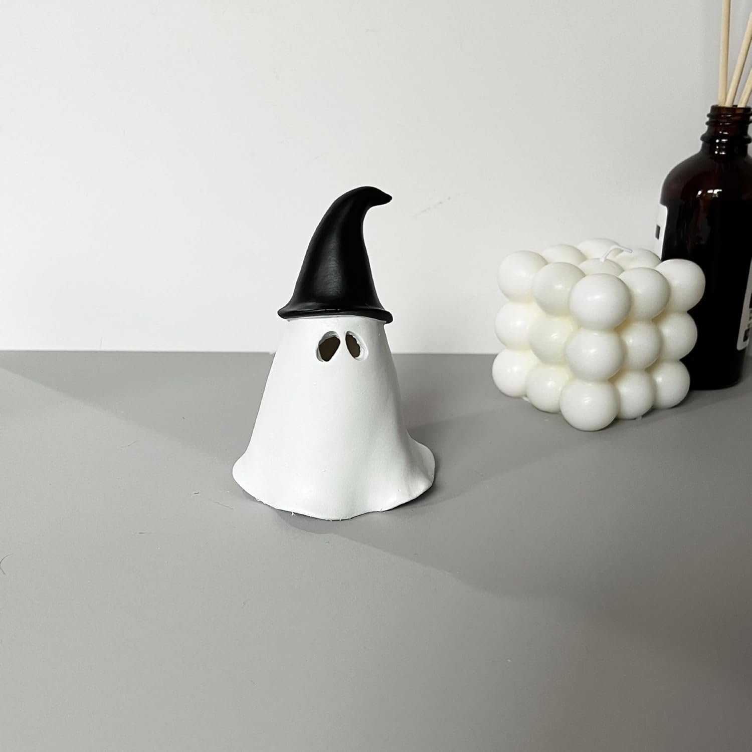 2 reviews for Halloween Ghost Statue Decor, 4″ Incense Holder Cone Burner Mini Smoking Ghost Resin Ornament for Home Indoor Desktop Decoration for Yoga Lover Stress Anxiety Relief (Witch Hat Ghost)