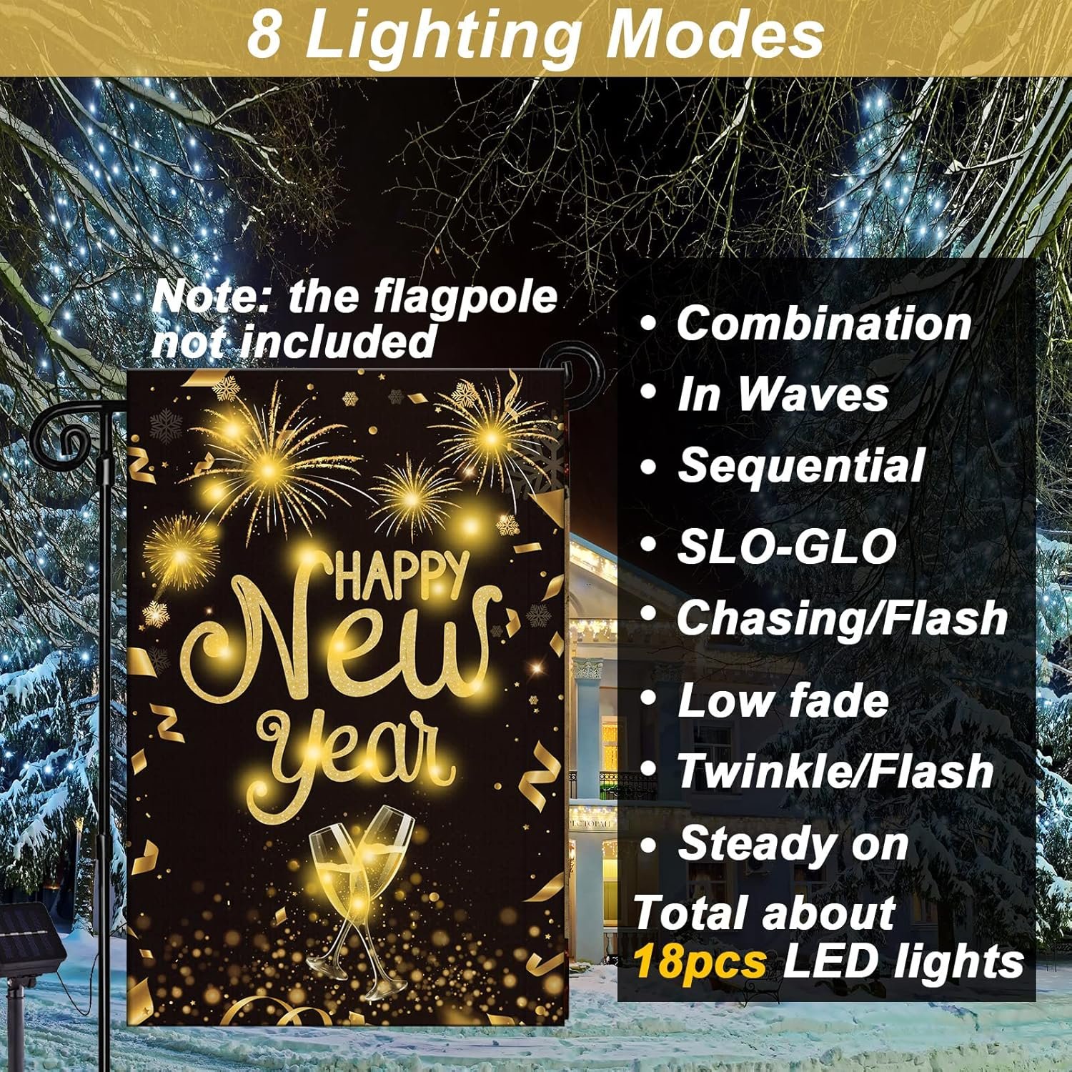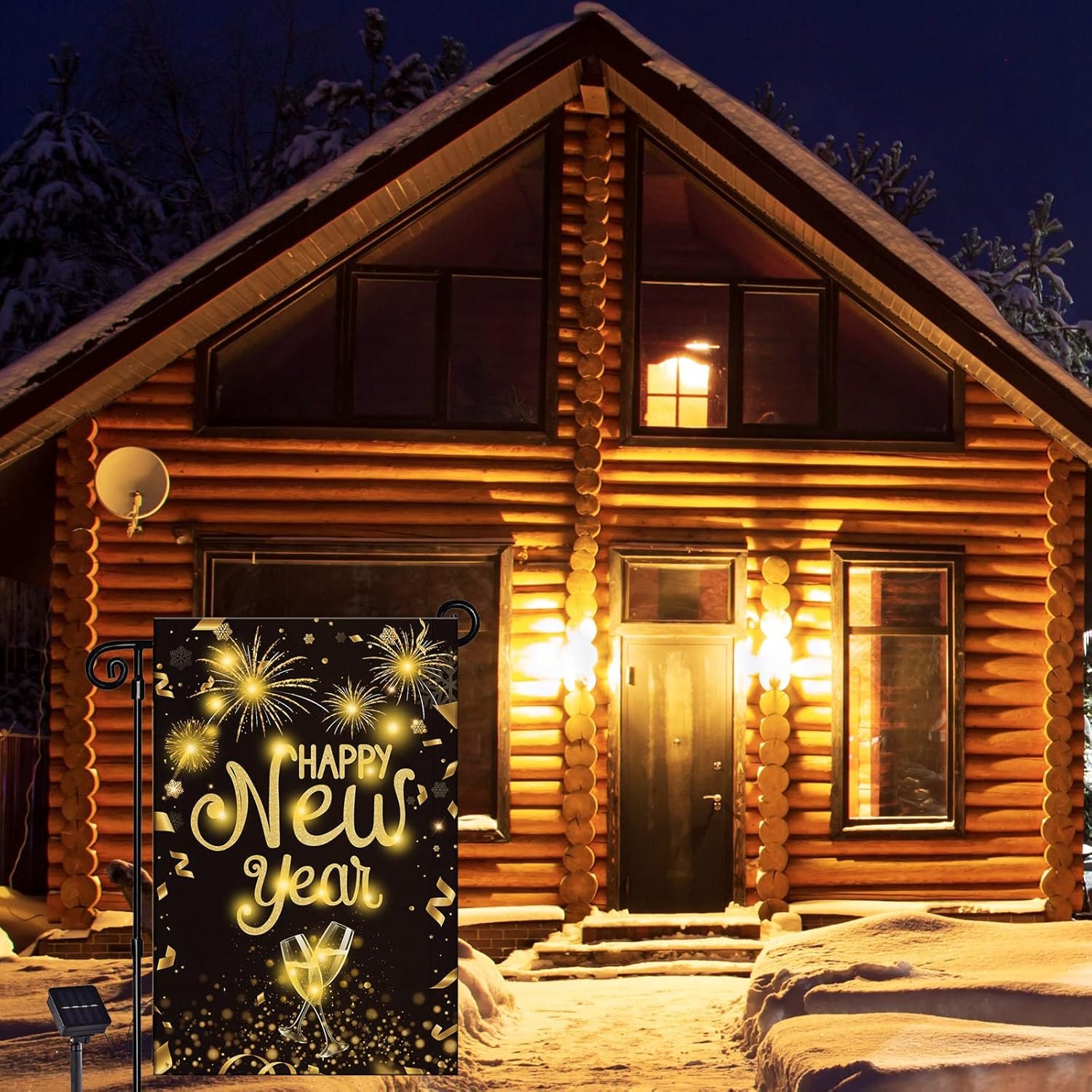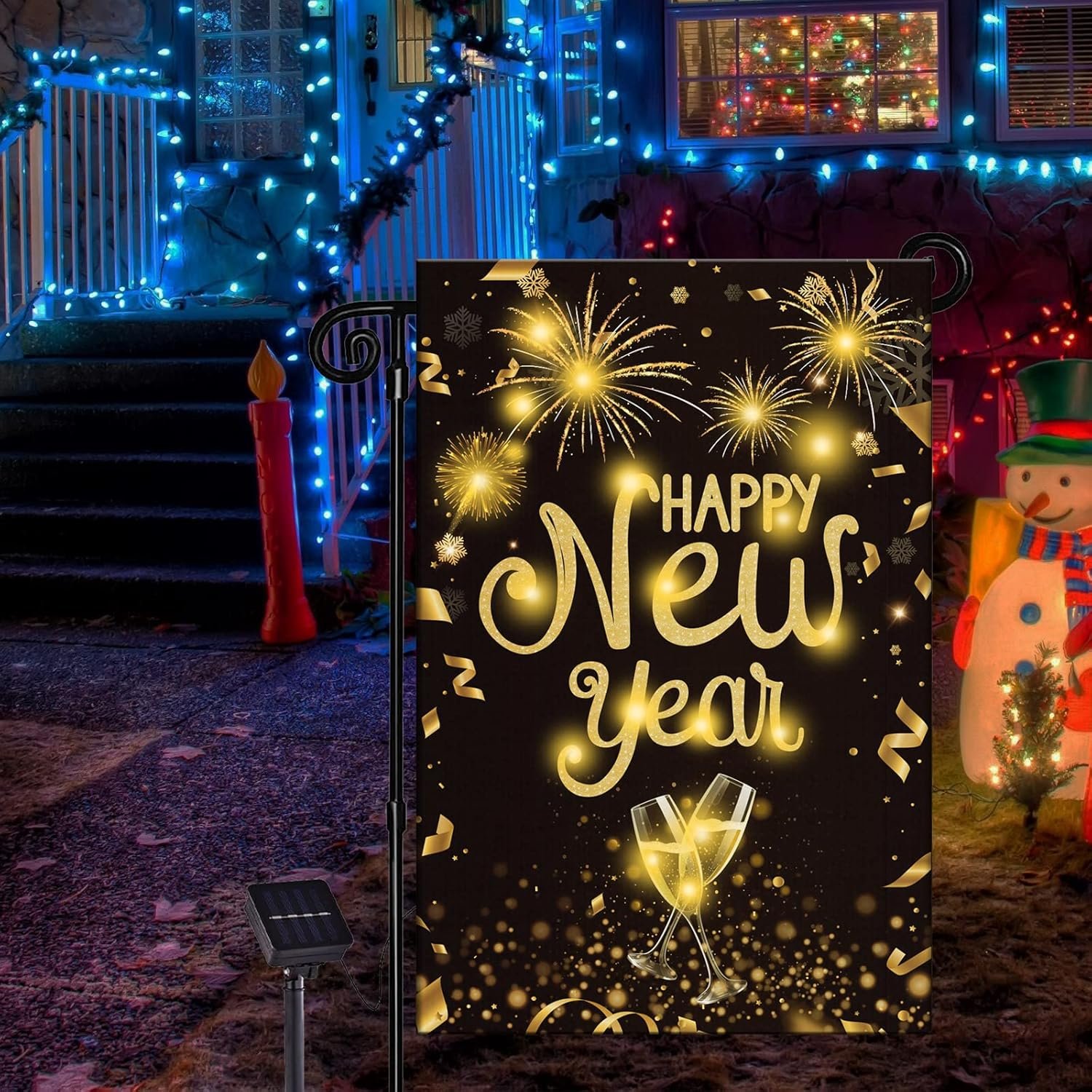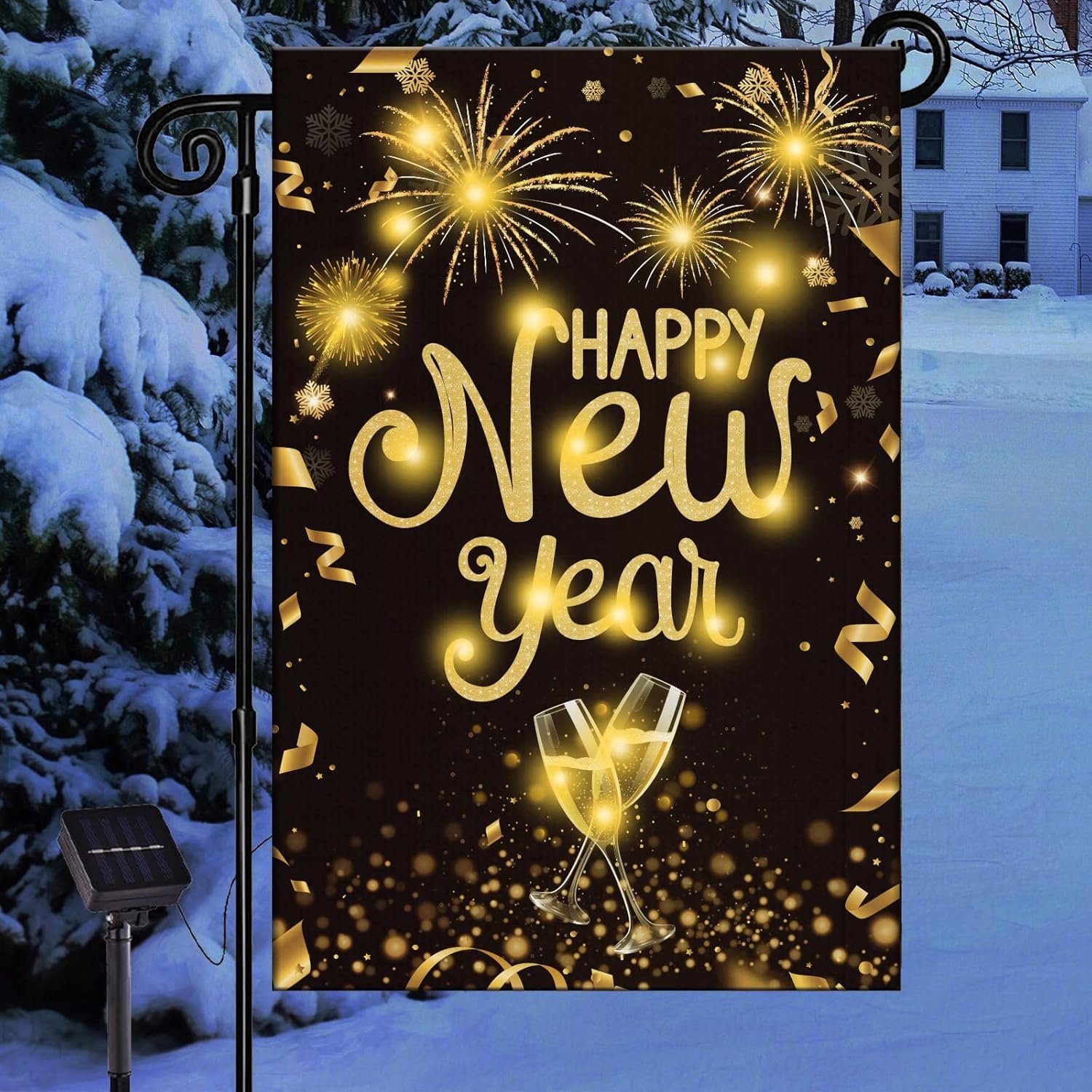 8 reviews for Happy New Year Lighted Garden Flag Holiday Outside Decor Cheers Celebrate New Year Solar LED Burlap Yard Flag Winter Yard Sign New Years Eve Outdoor Banner for Patio Lawn Yard Decoration 12 x 18 Inch