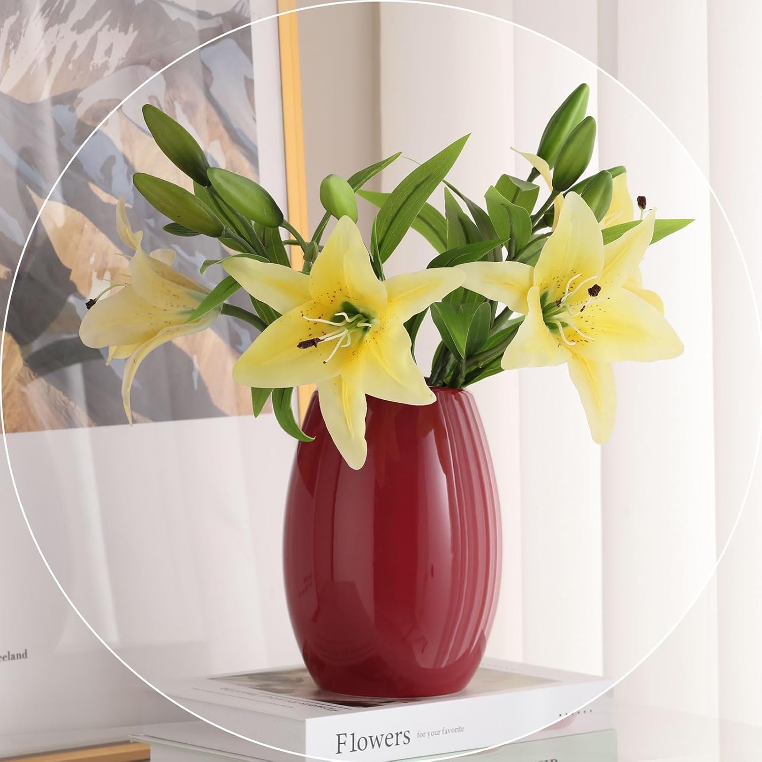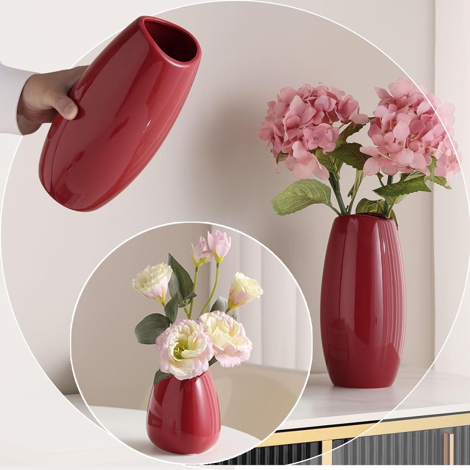 hjn Ceramic Vase Set of 3 Red Flower Vase for Home Decor, Modern Decorative Vase for Flowers Vases for Your Ideal Shelf Decor/Table/Living Room/Kitchen/Office-Red…