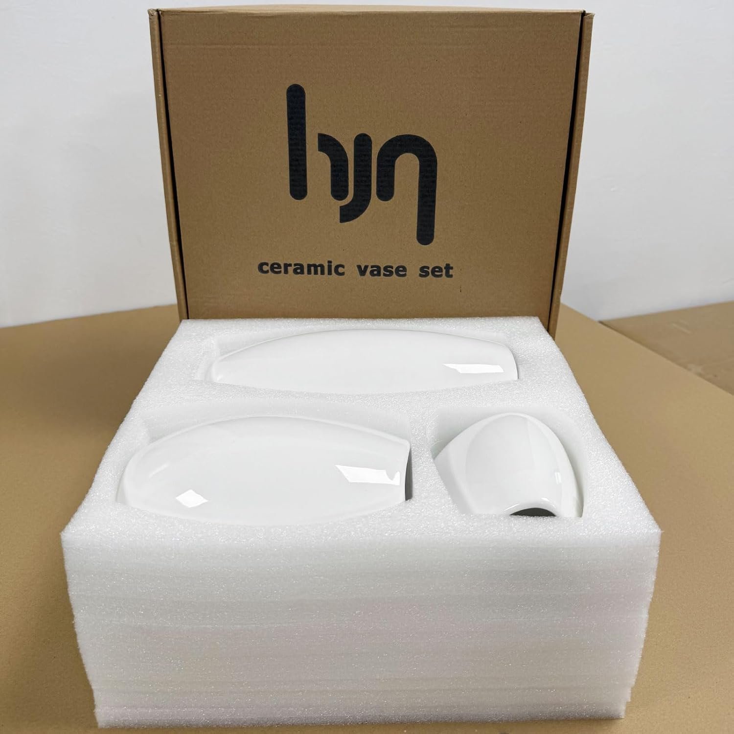 hjn Ceramic Vase Set of 3 White Flower Vase for Home Decor, Modern Decorative Vases for Flowers/Ideal Shelf Decor/Table/Living Room/Kitchen/Office-White